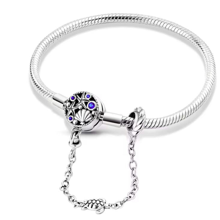 Pulseira de Contas em Prata 925, Símbolo do Mar