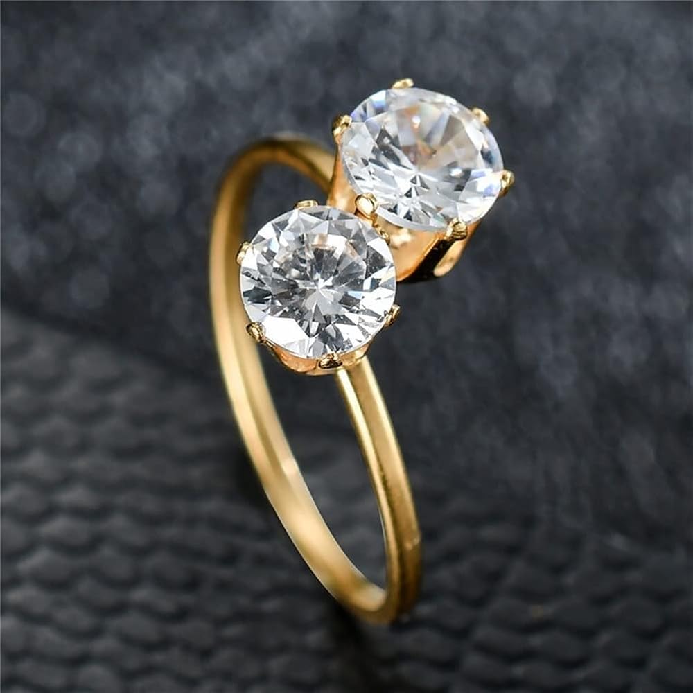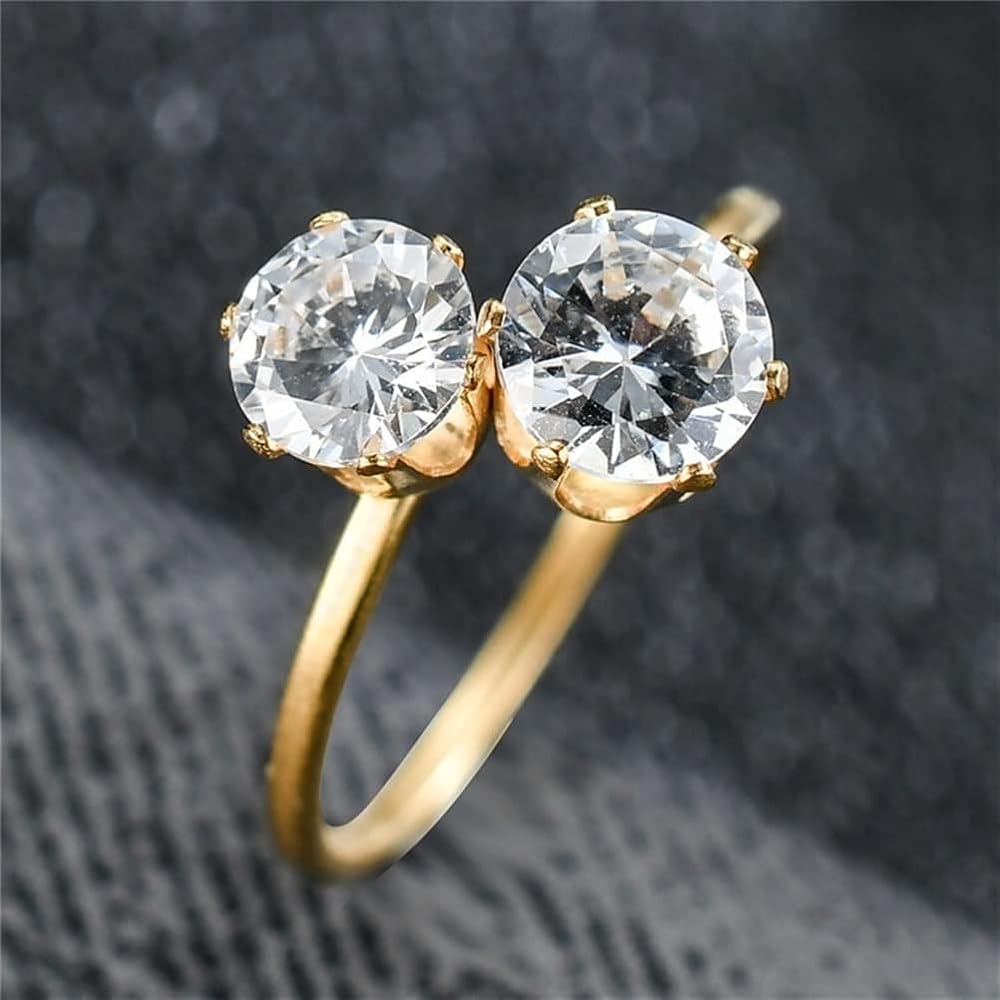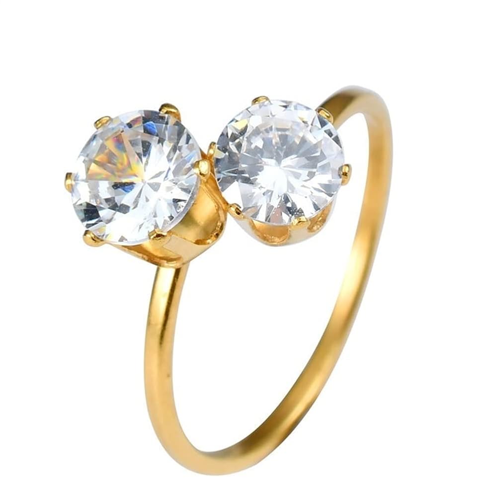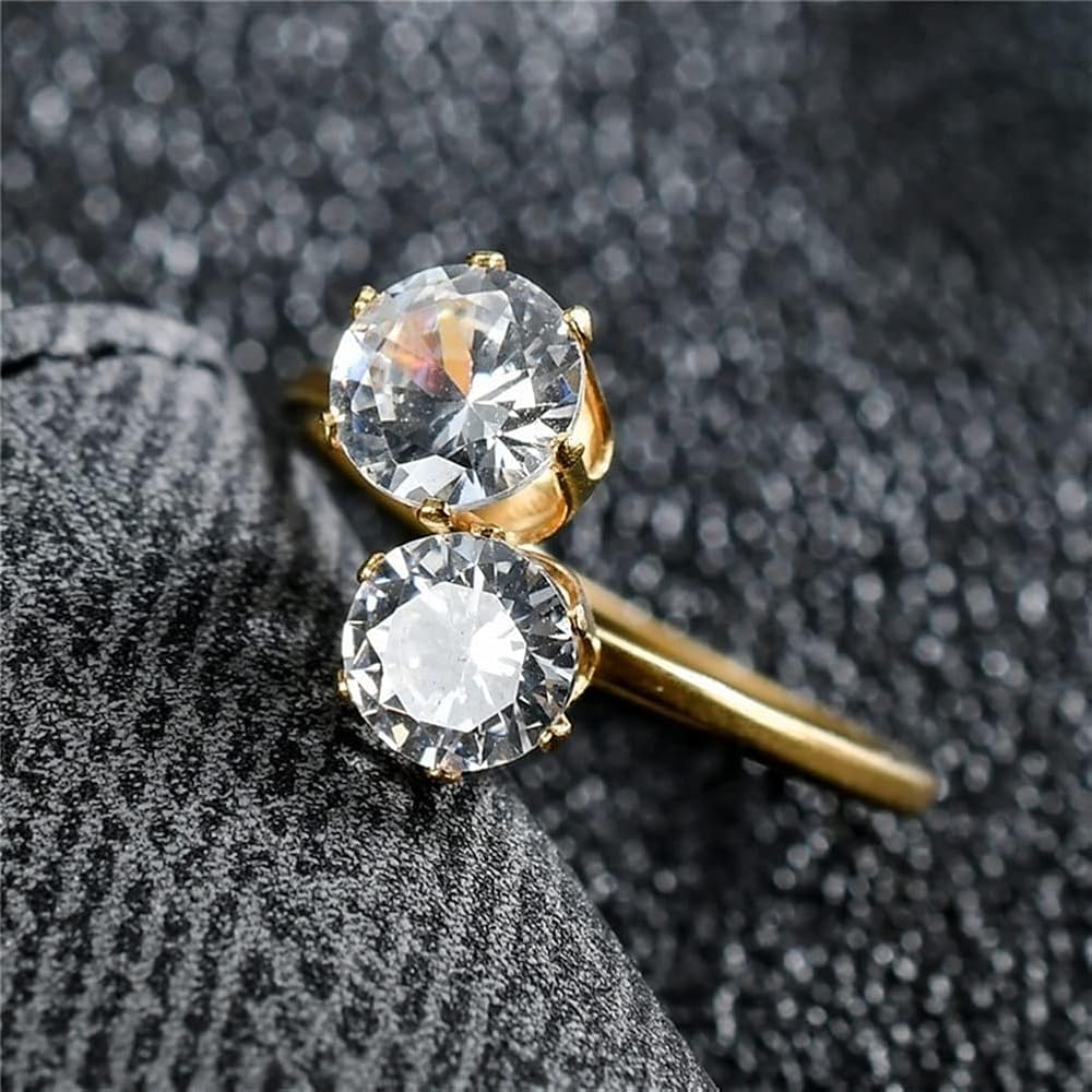 Anel de Abertura Ajustável e Pedras Incrustadas em Aço Inoxidável, Ouro