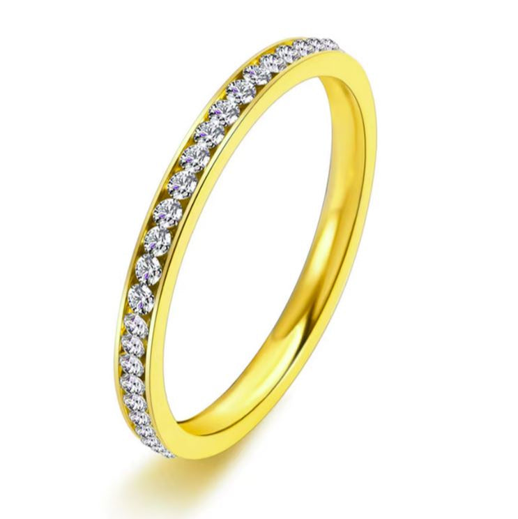 Anel Bling em Aço Inoxidável com Zircão Cúbico, Cor Ouro.