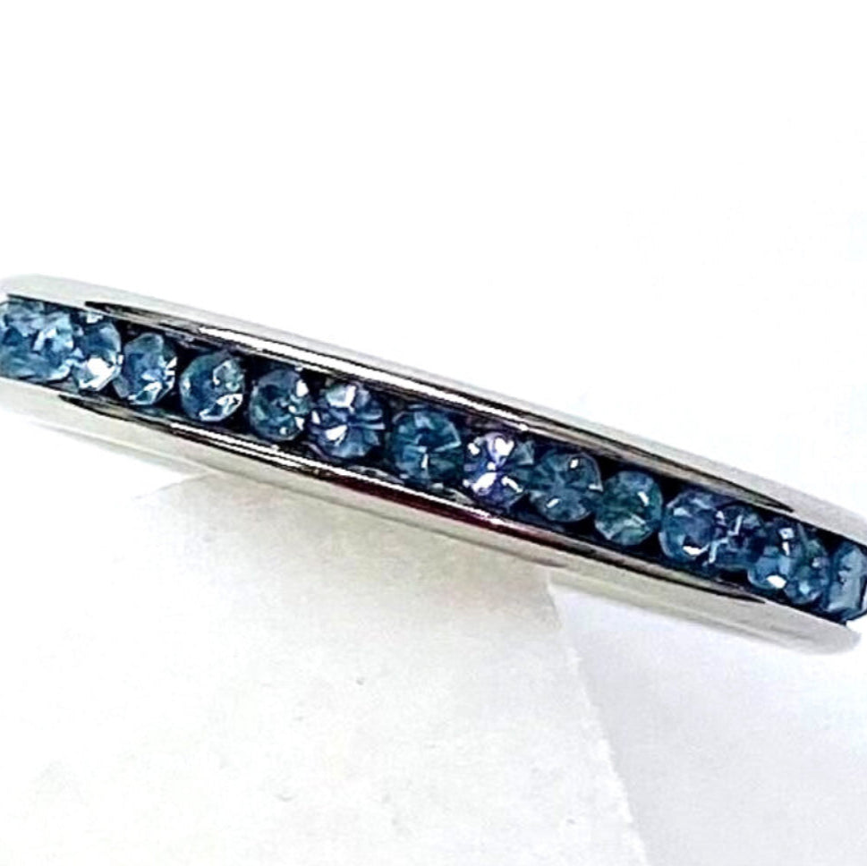 Anel em Aço Inoxidável com Zircónias Azuis ao seu redor.