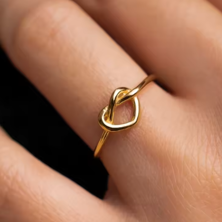 Anel Ajustável Coração em Aço Inoxidável, na cor Ouro.