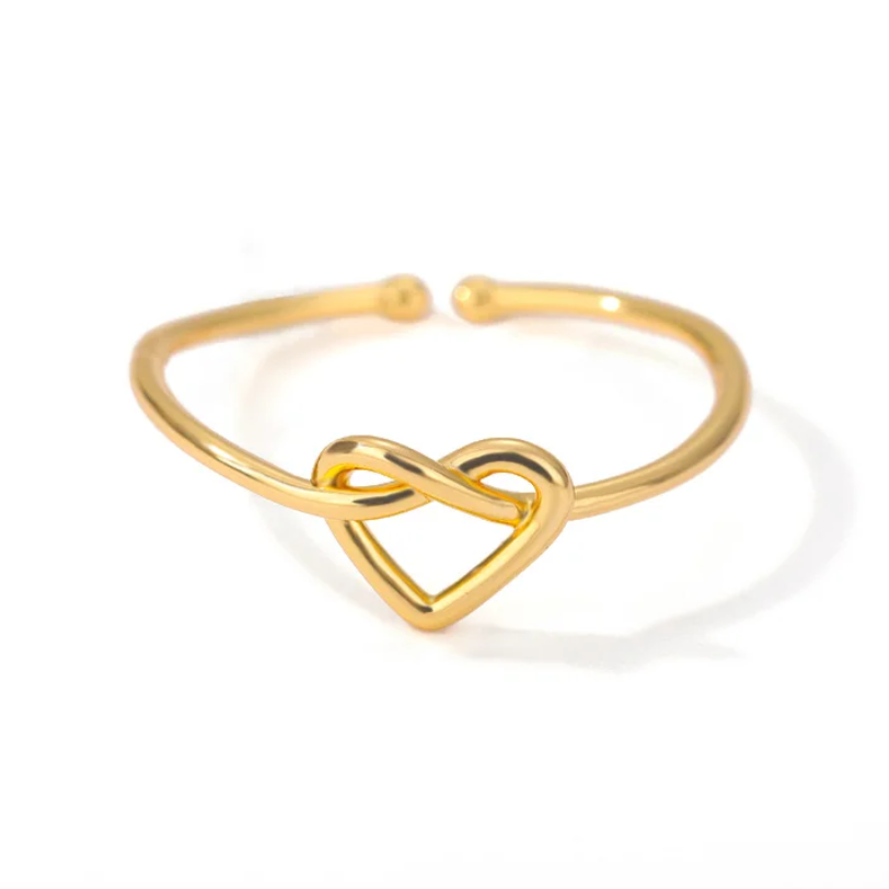 Anel Ajustável Coração em Aço Inoxidável, Ouro