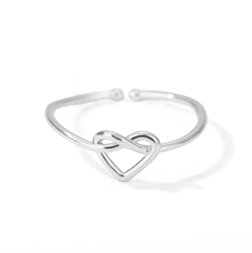 Anel Ajustável Coração em Aço Inoxidável, Prata.