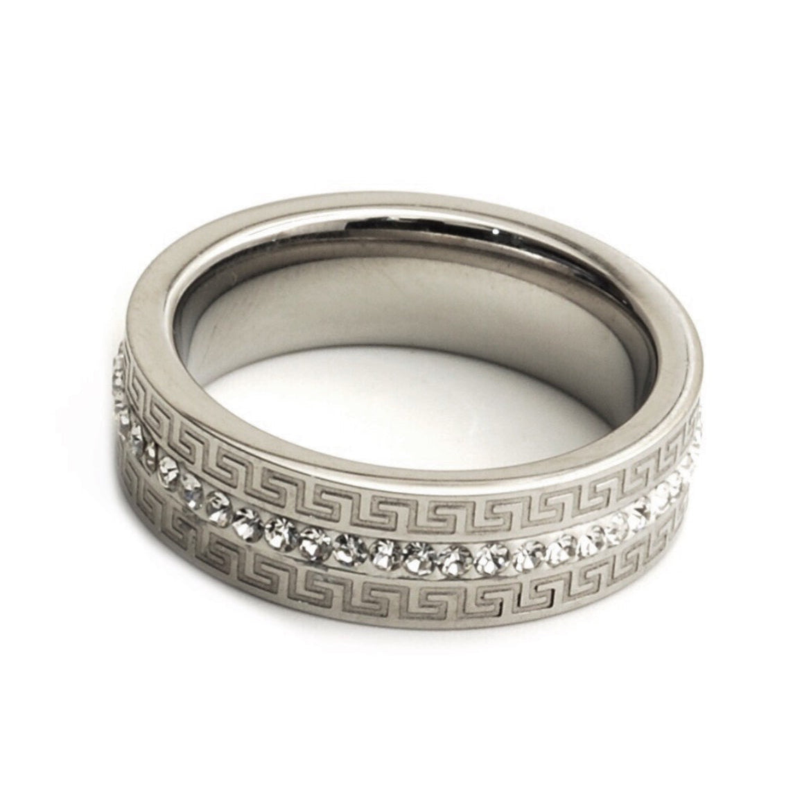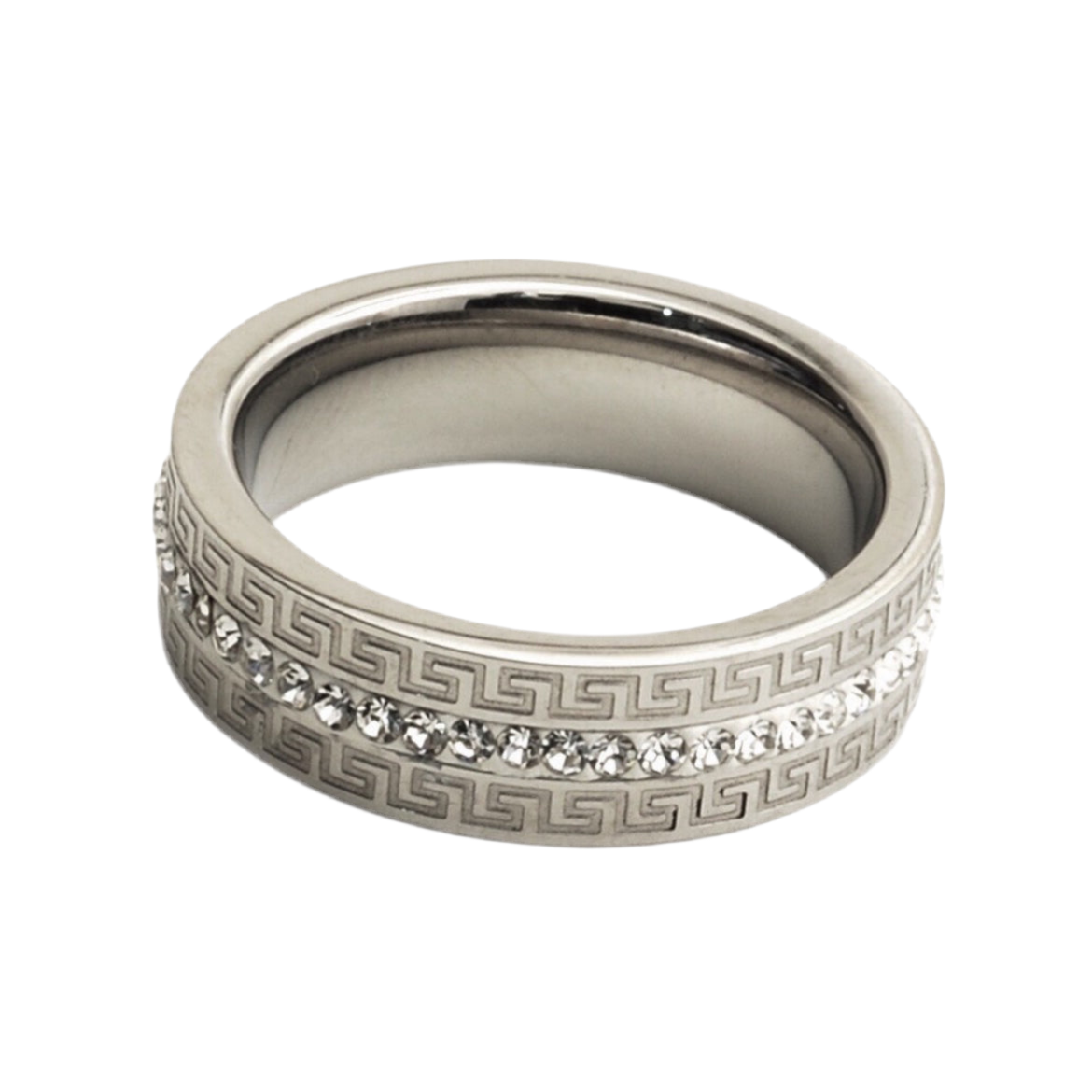 Anel tipo Aliança em Inox com Epóxi e Zircónias ao seu redor, Cor Prata.