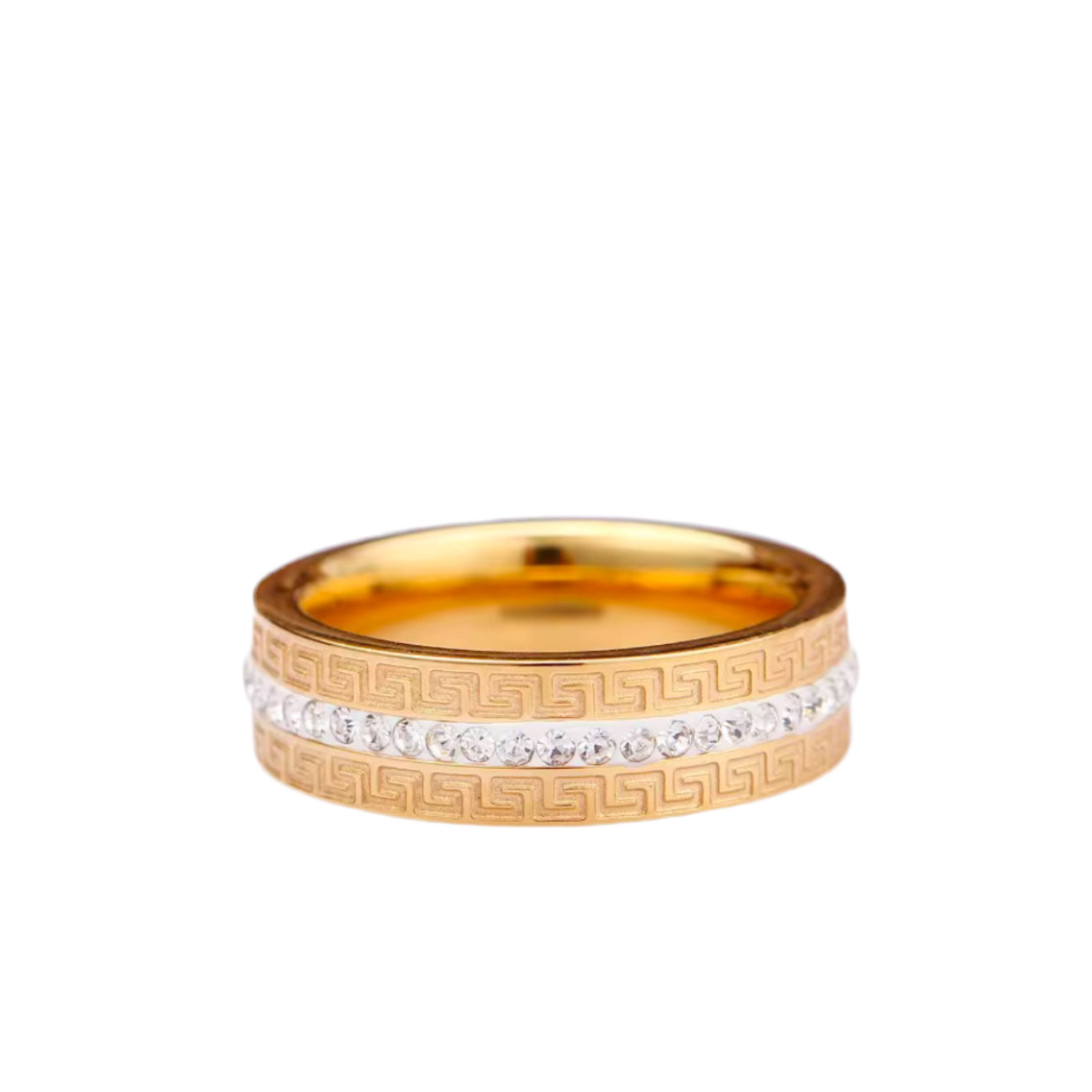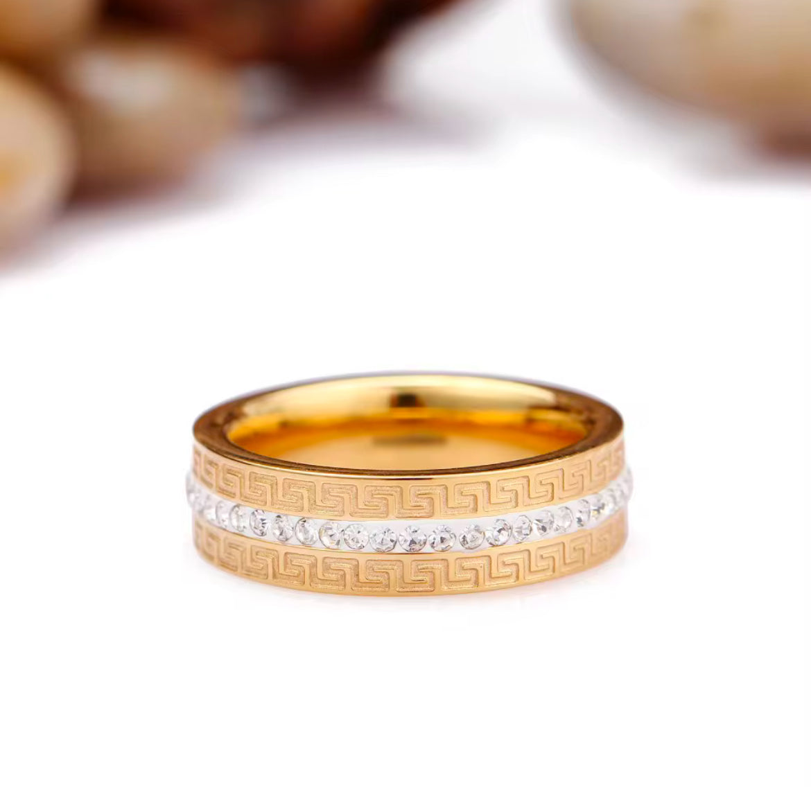 Anel tipo Aliança em Inox com Epóxi e Zircónias ao seu redor, Cor Ouro.