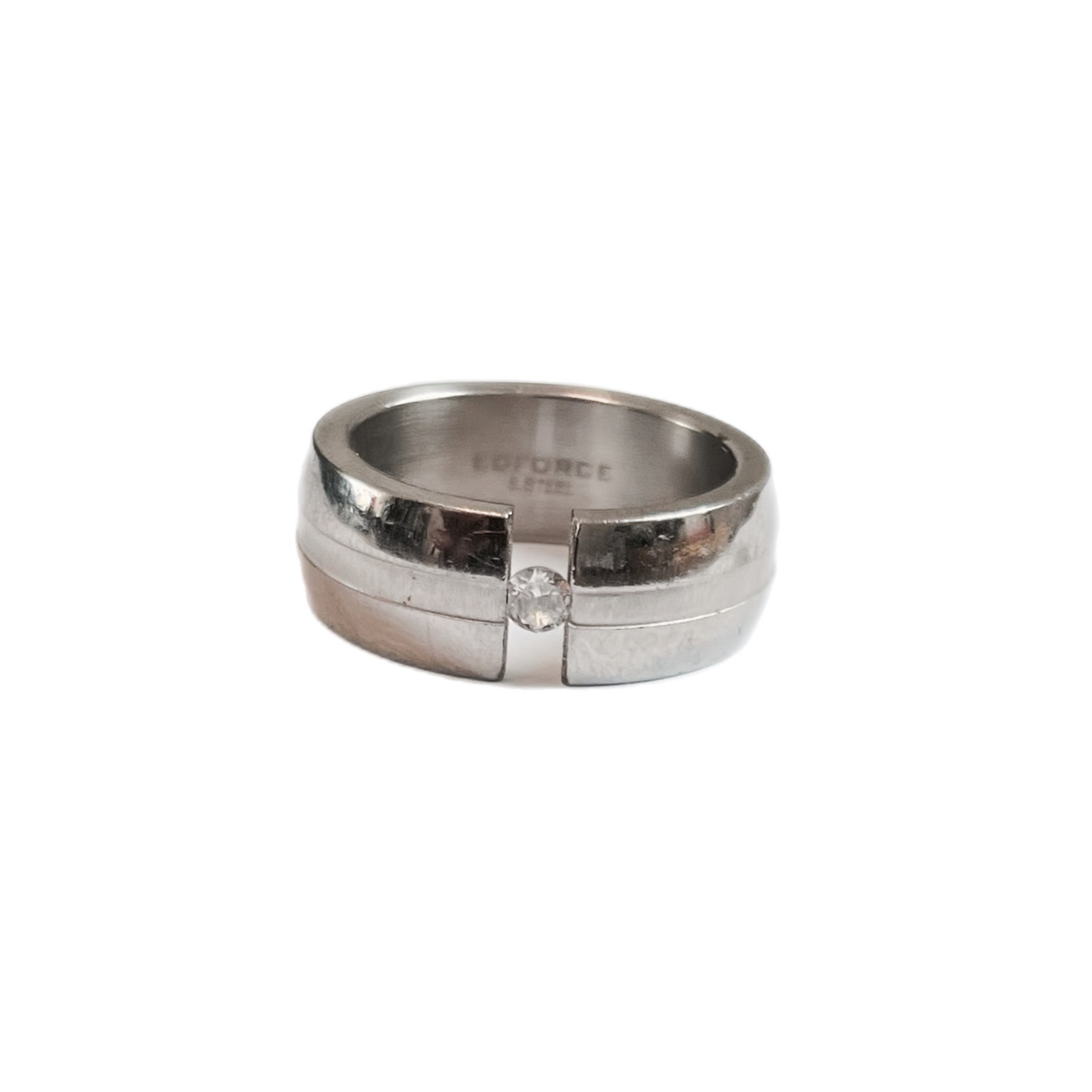 Anel Tipo Aliança de Noivado em Aço Inoxidável com Zircónia no Centro.