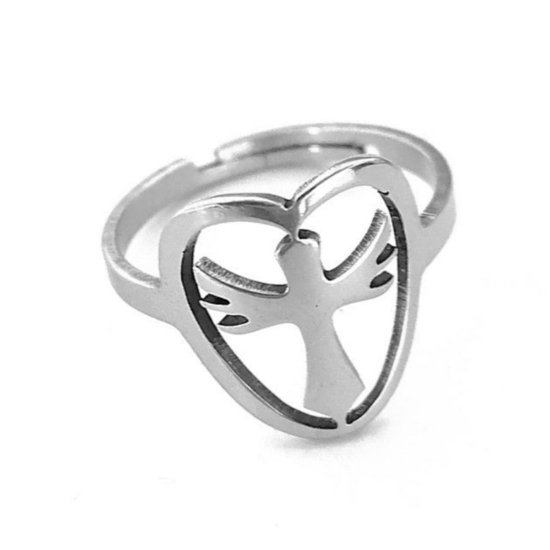 Anel de Anjo dentro de Coração em Aço Inoxidável.