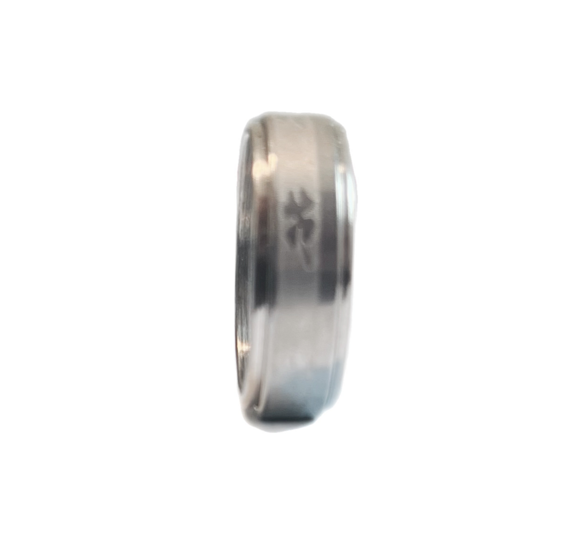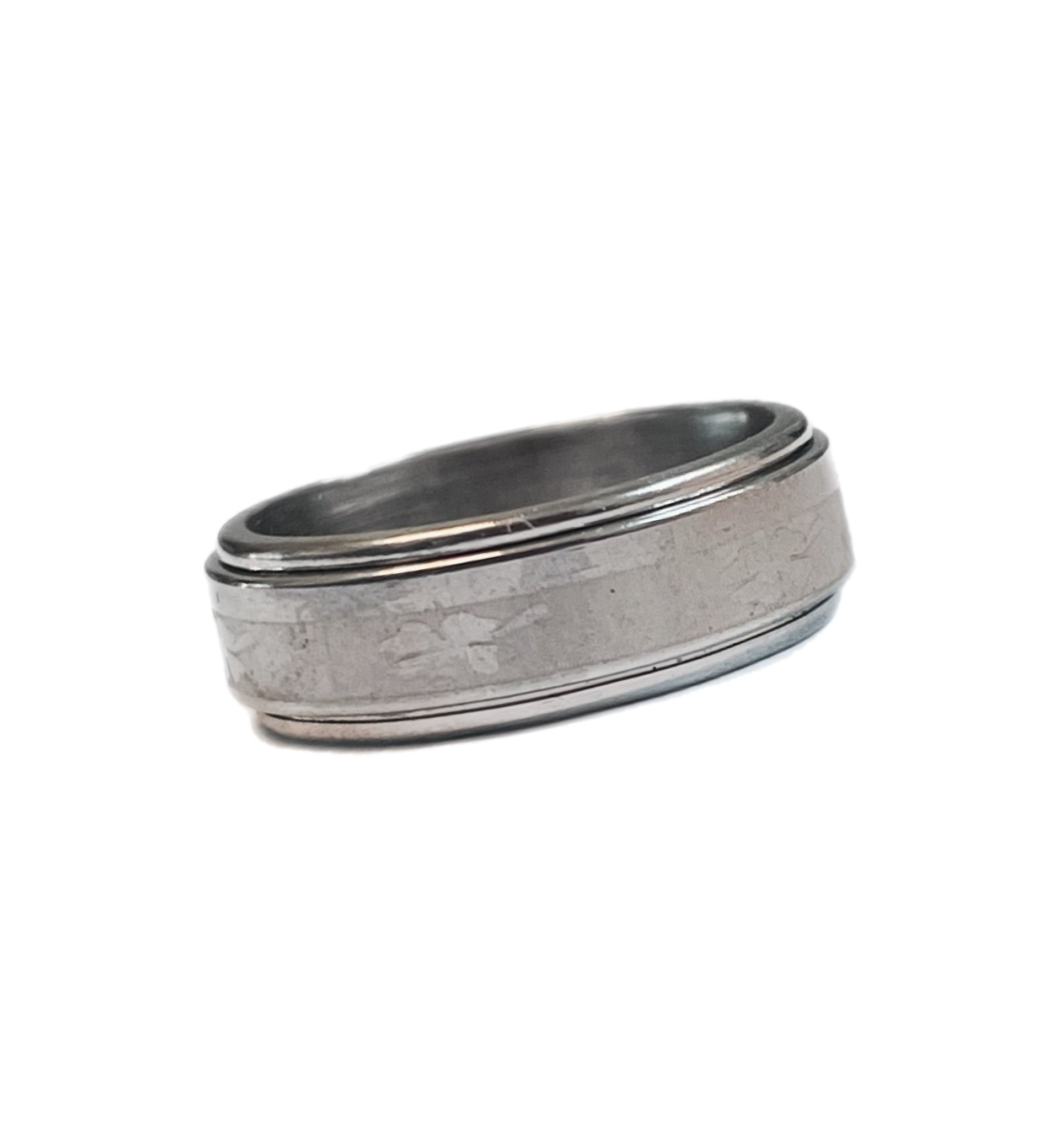 Anel Giratório Anti-Stress em Aço Inoxidável com Desenho Trevo, Cor Prata.