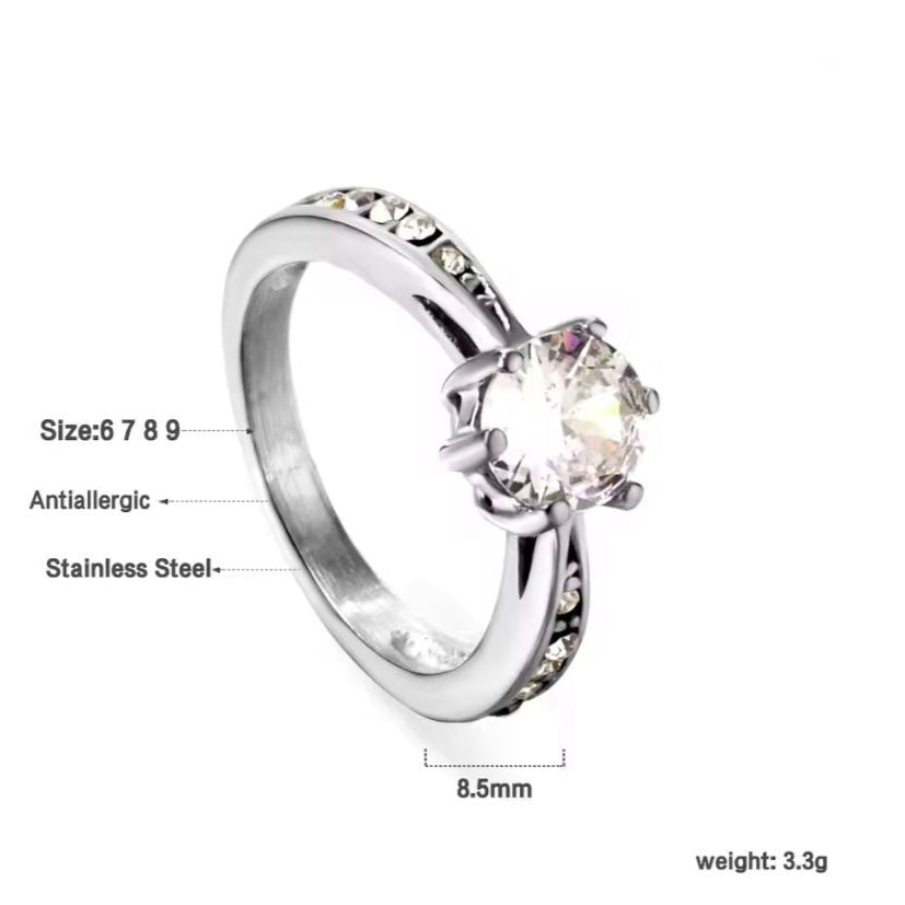 Anel de Senhora com Zircões em Aço Inoxidável 316L, Cor: Prata.