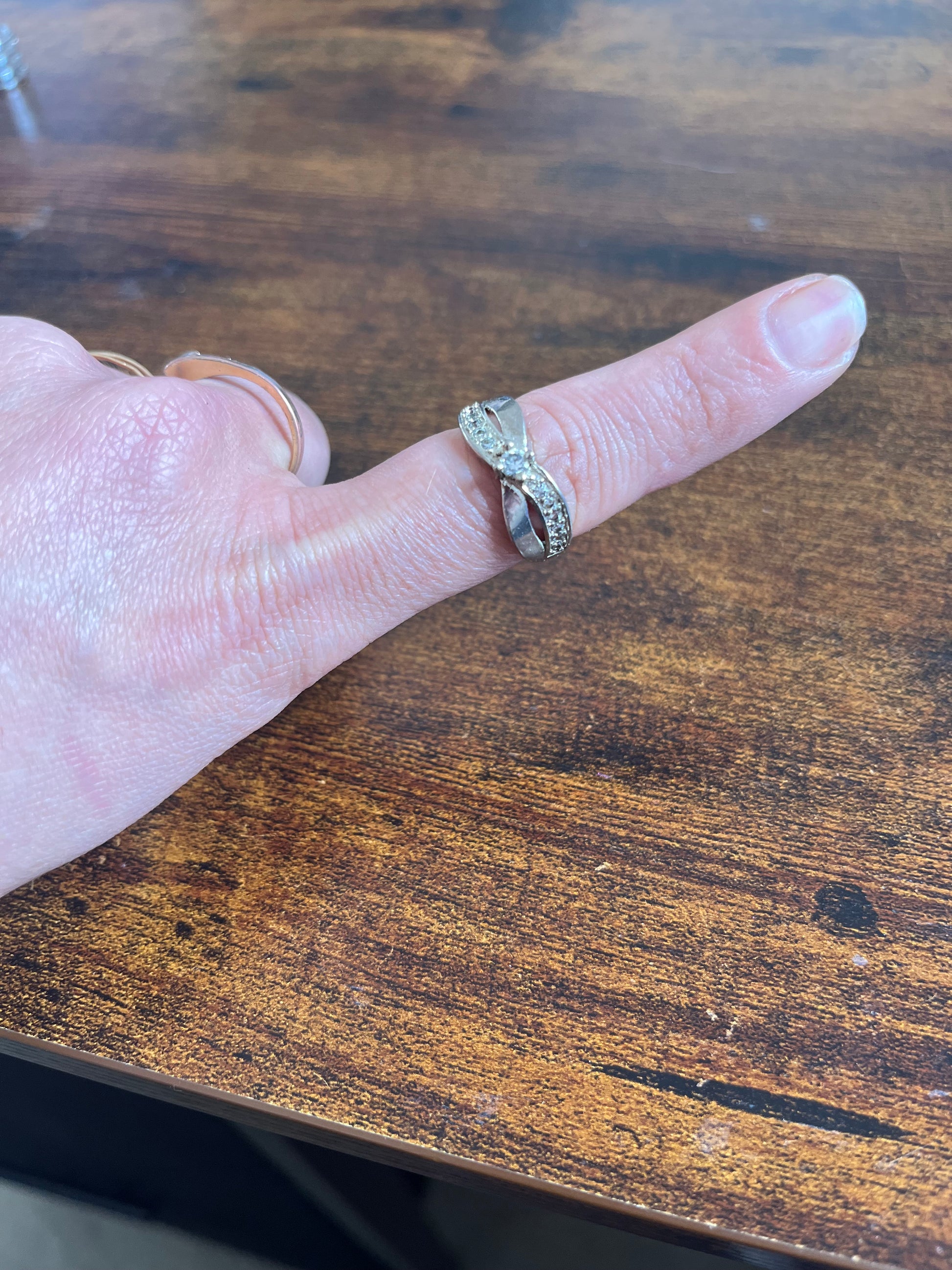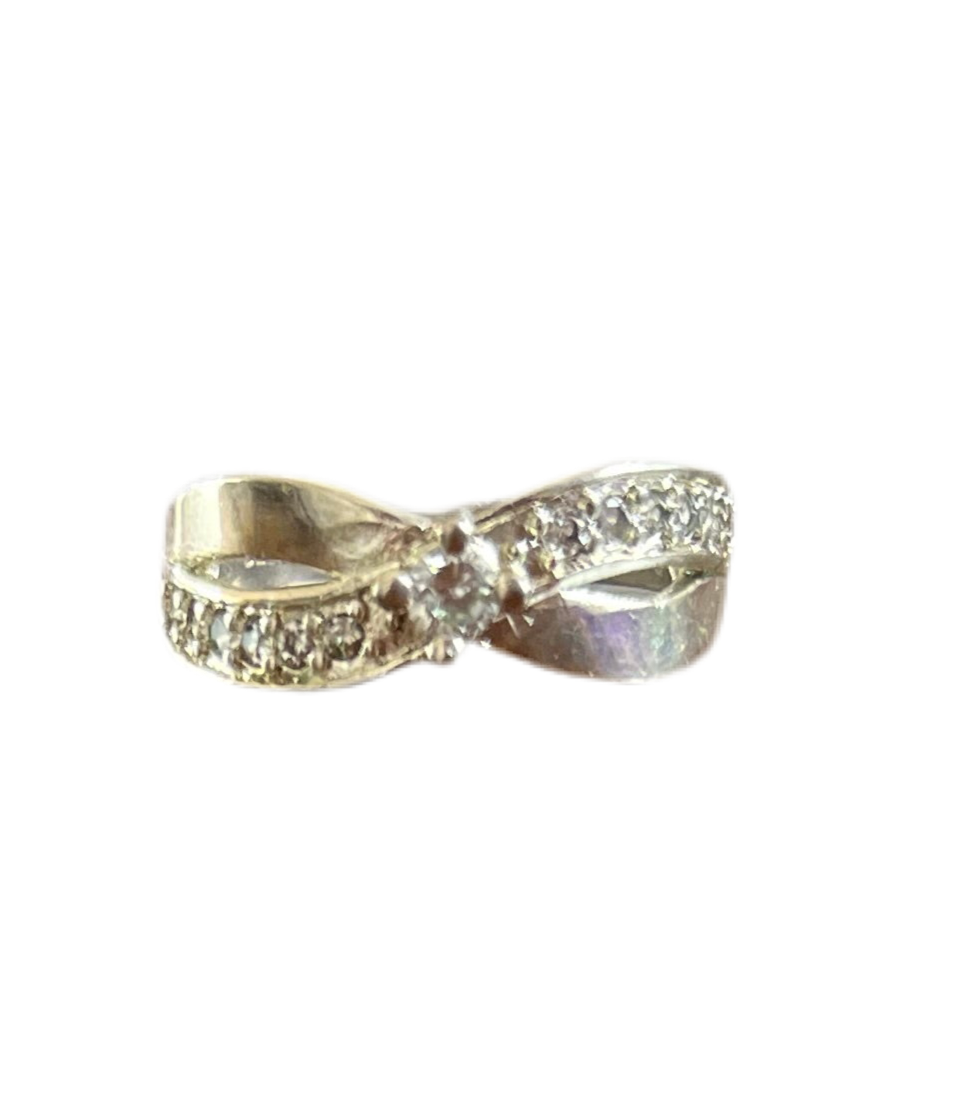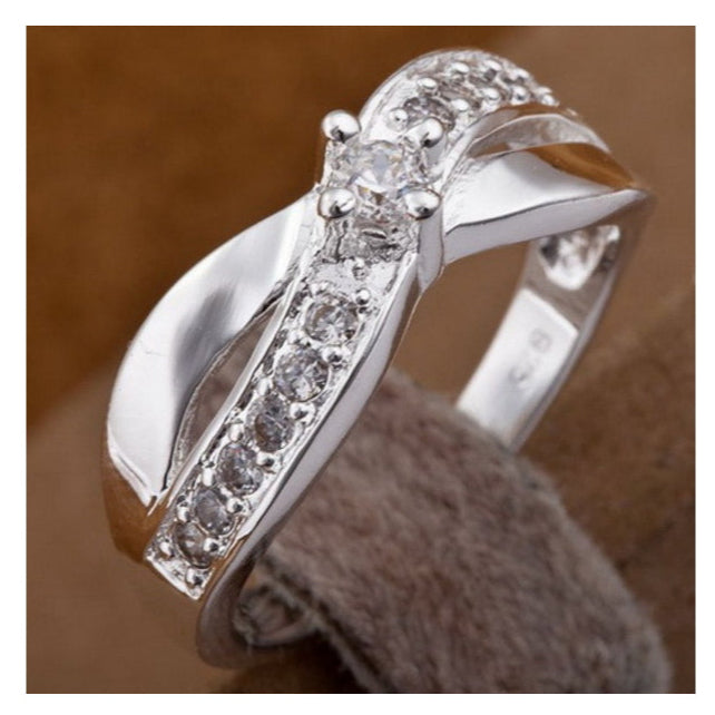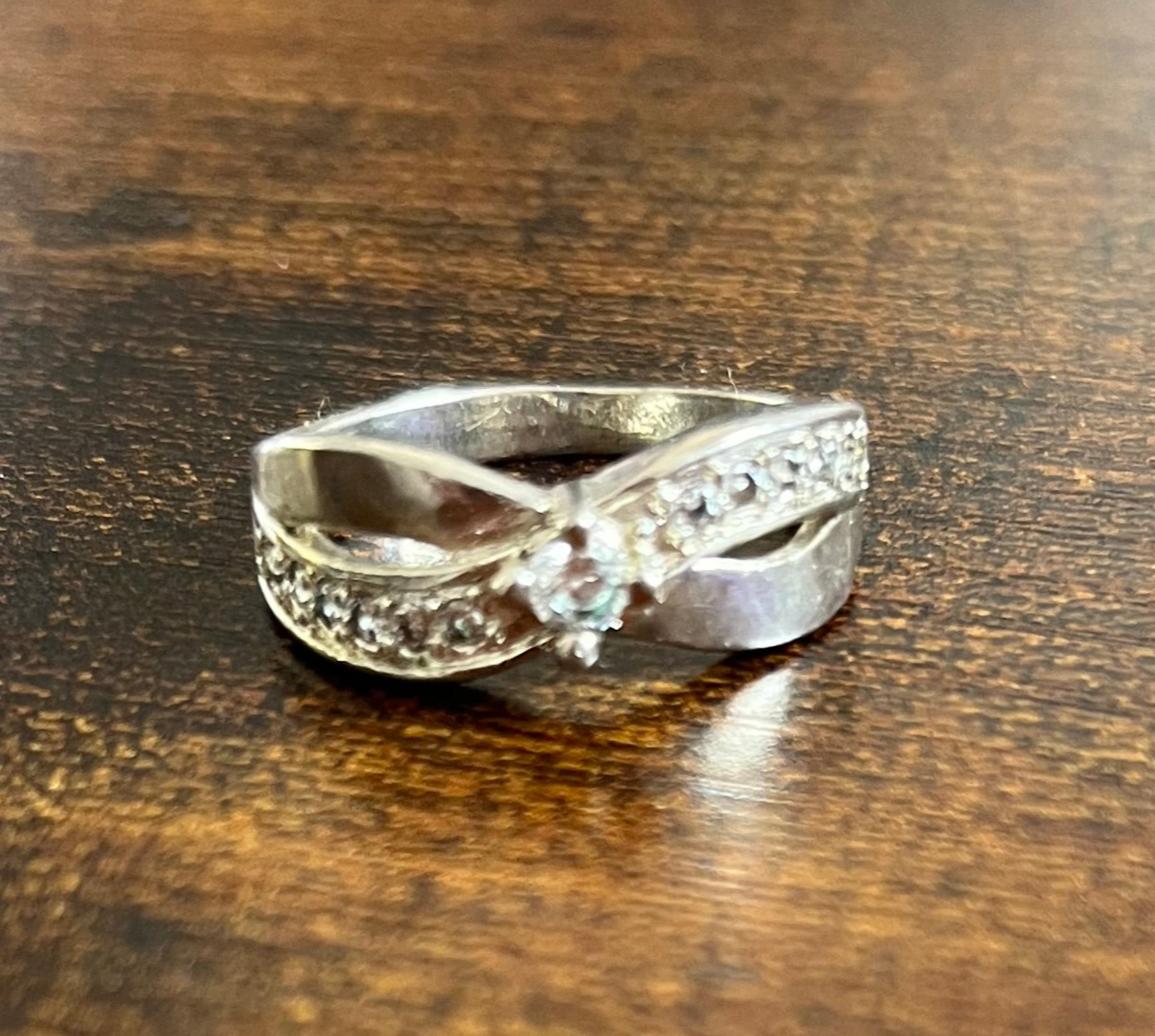 Anel de Senhora em Prata 925, Cruzado com Zircônias