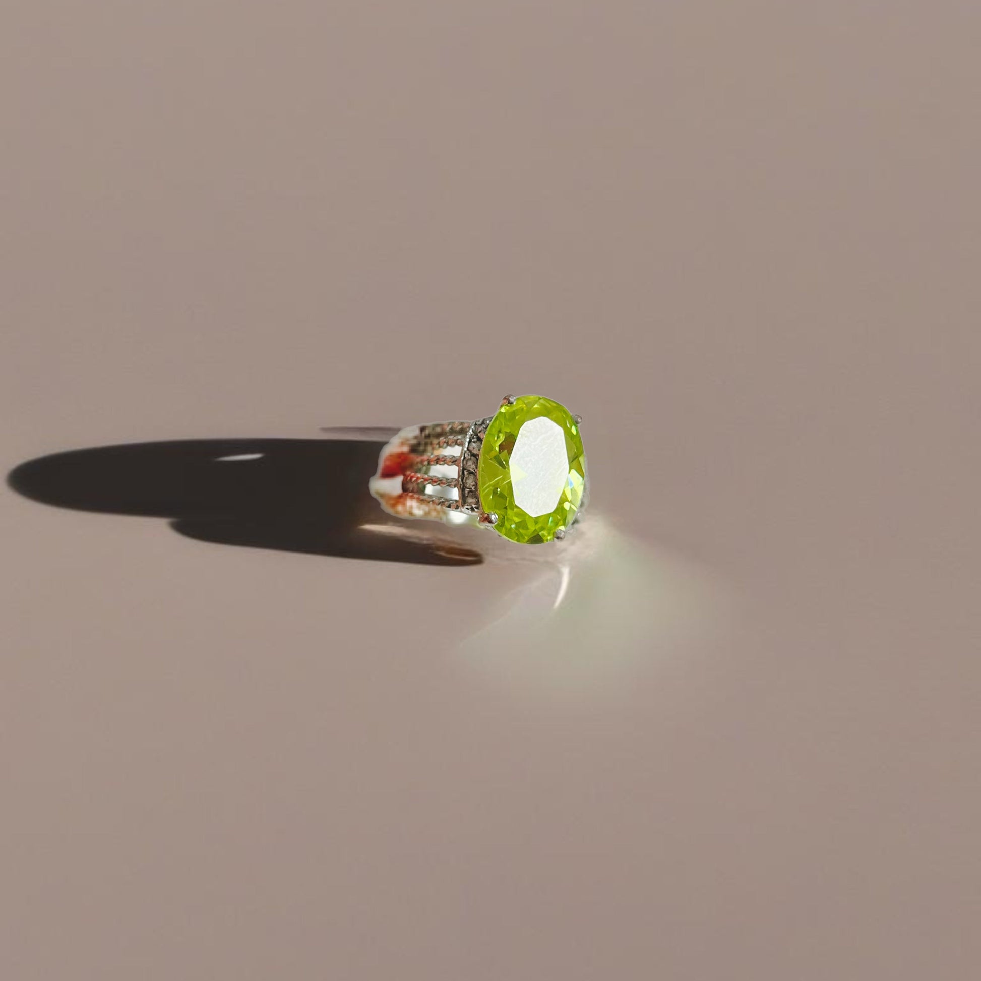 Anel Grosso de Fantasia com Zircónia Cúbica Verde.
