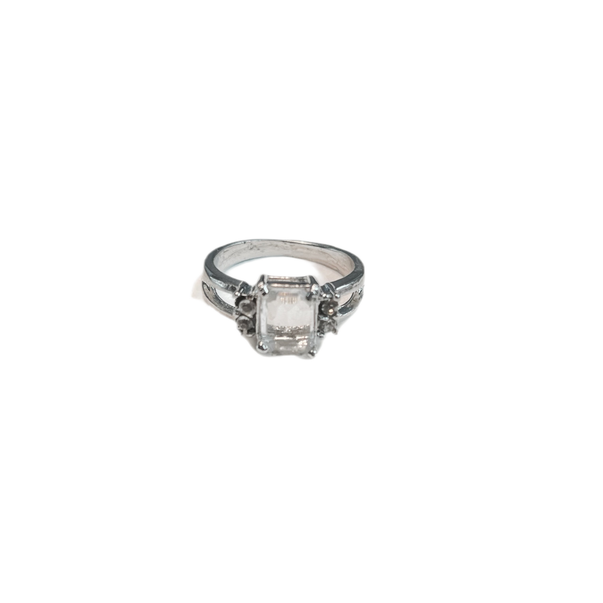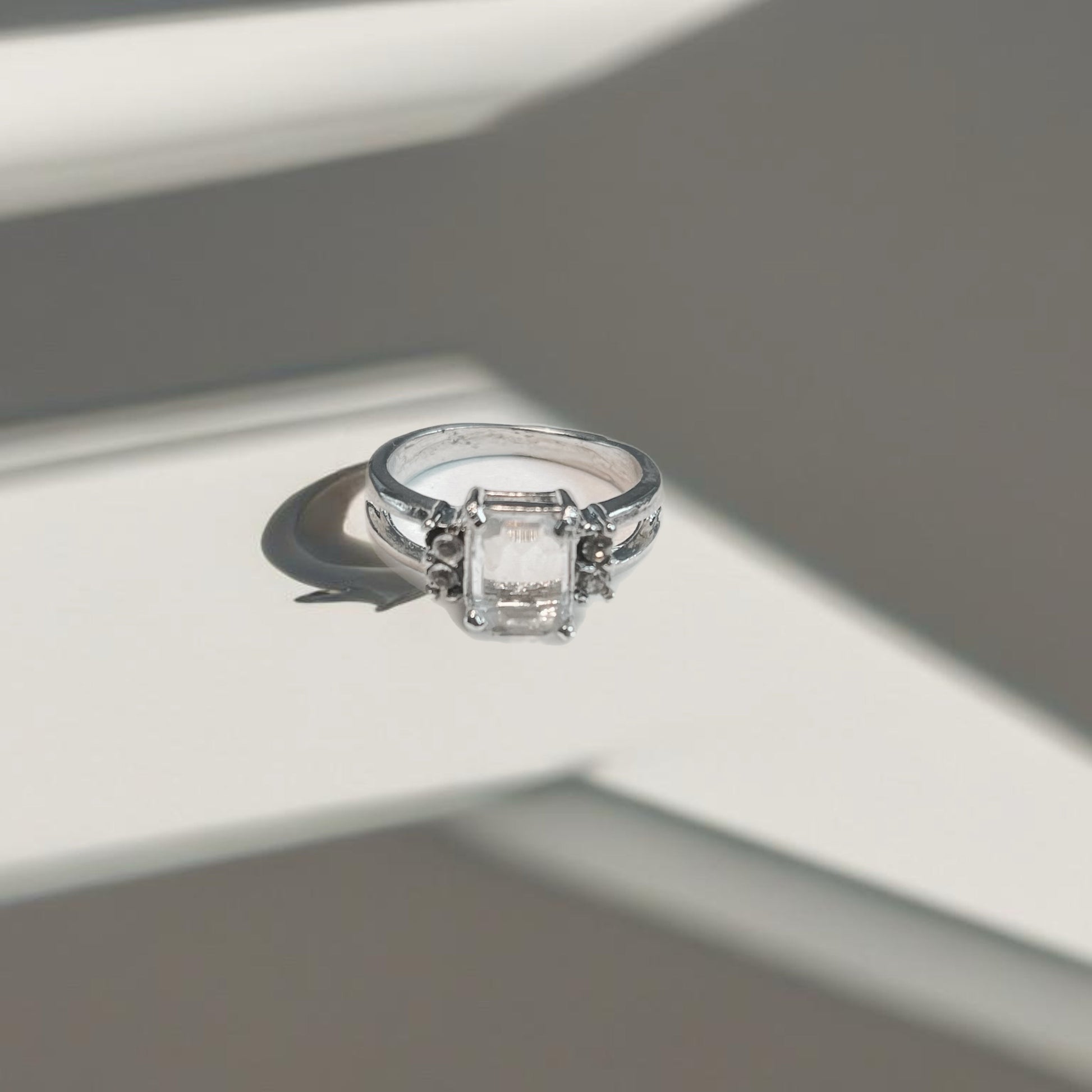 Anel Folheado a Ouro com Pedra Quartzo Transparente e Zircónias.