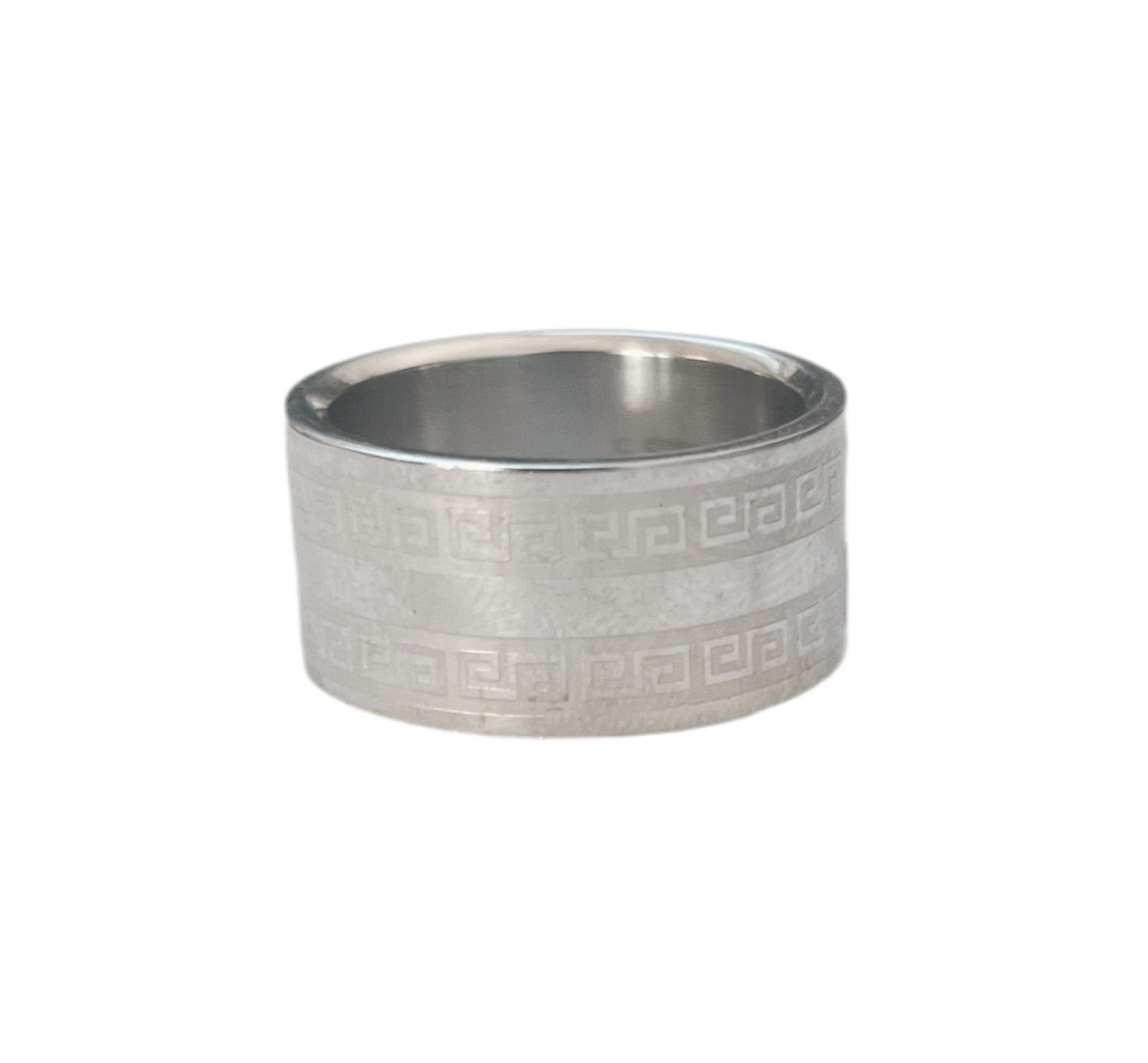 Anel Grosso em Aço Inoxidável com Símbolos Gregos.