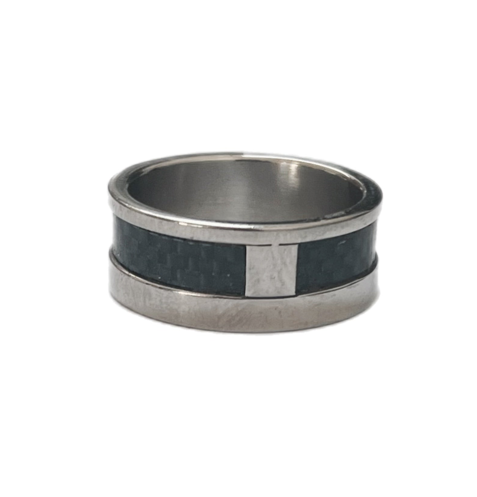 Anel Homem em Aço Inoxidável 316L, com Fibra de Carbono no Centro.