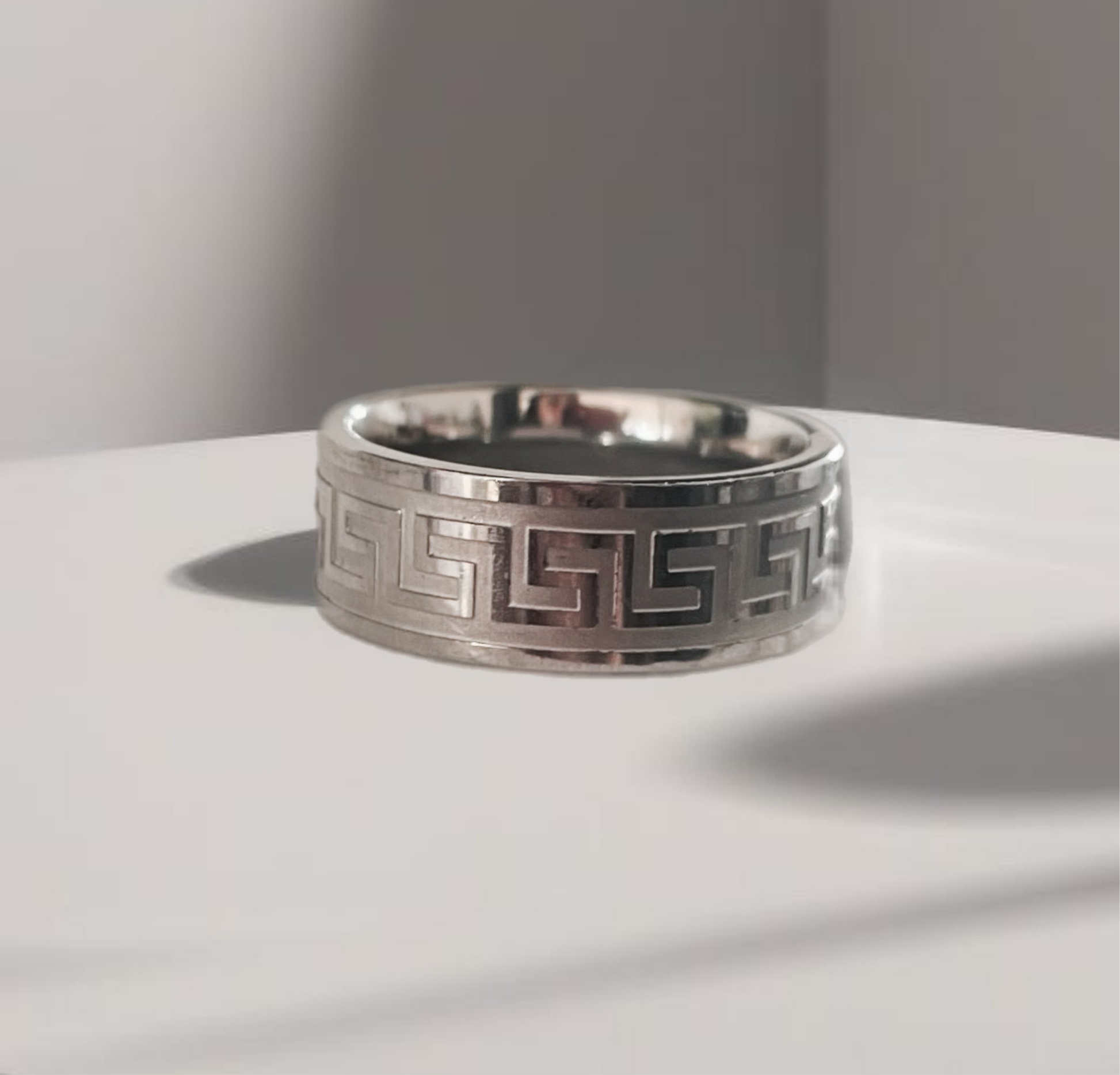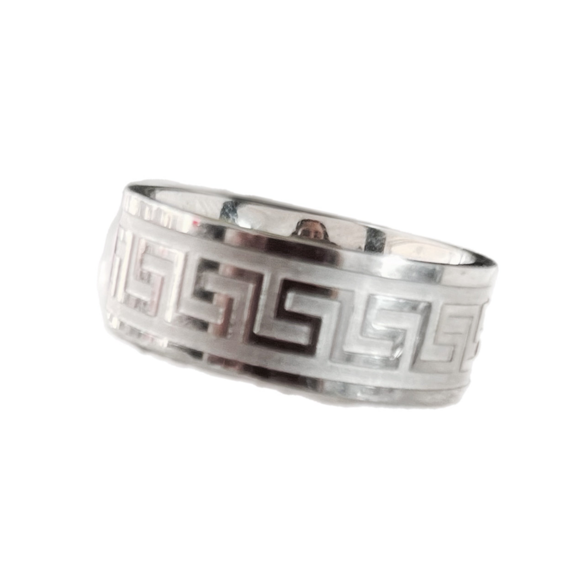 Anel Homem em Aço Inoxidável com Padrão Asteca, Efeito Labirinto.