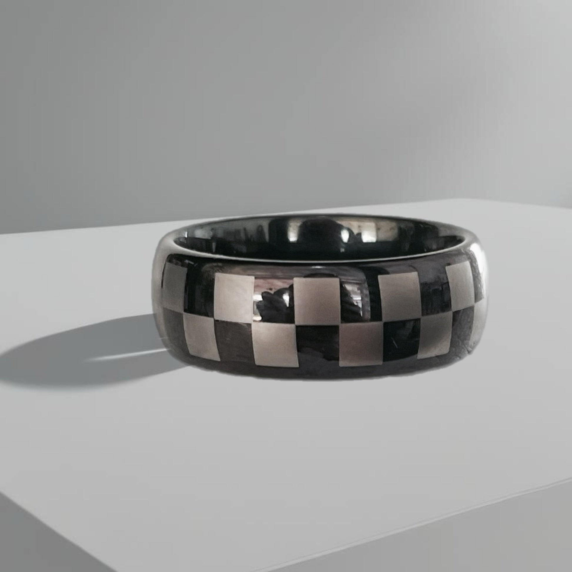 Anel de Homem em Aço Inoxidável, Estilo Xadrez.