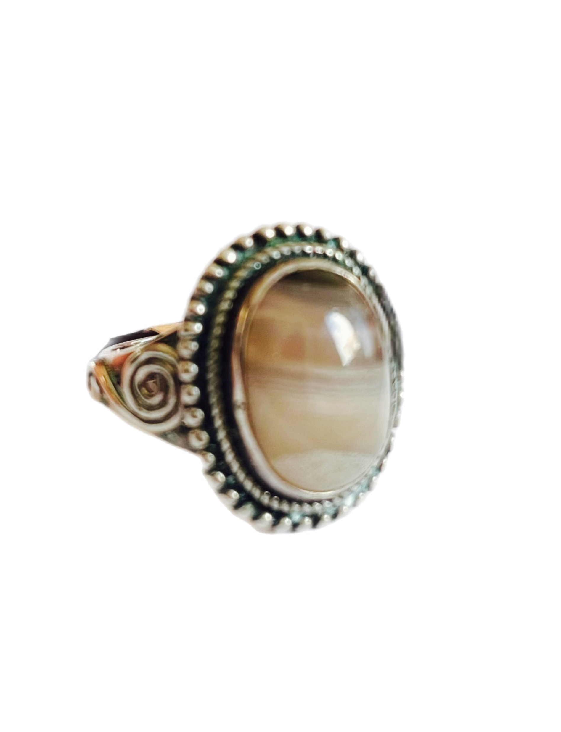Anel de Senhora em Prata com Pedra Natural Olho Tigre.
