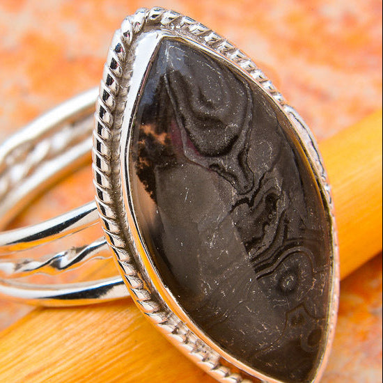 Anel de Prata 925 com Pedra Natural Psilomelano T:8,25