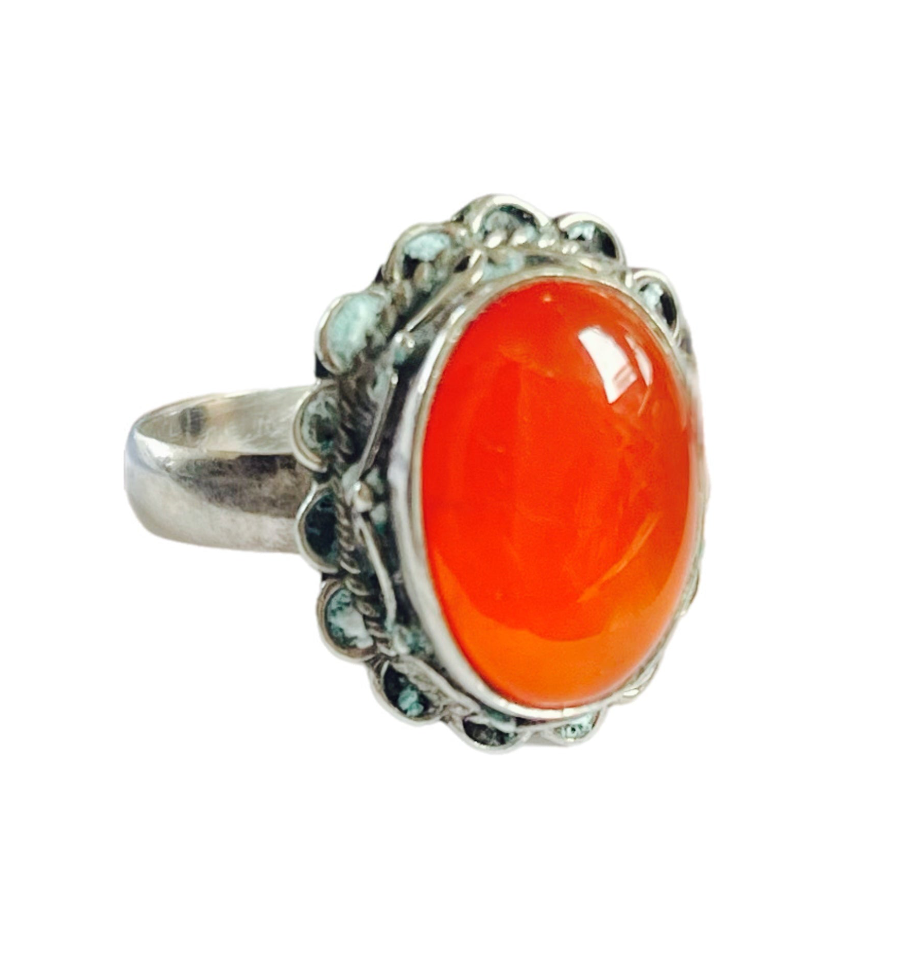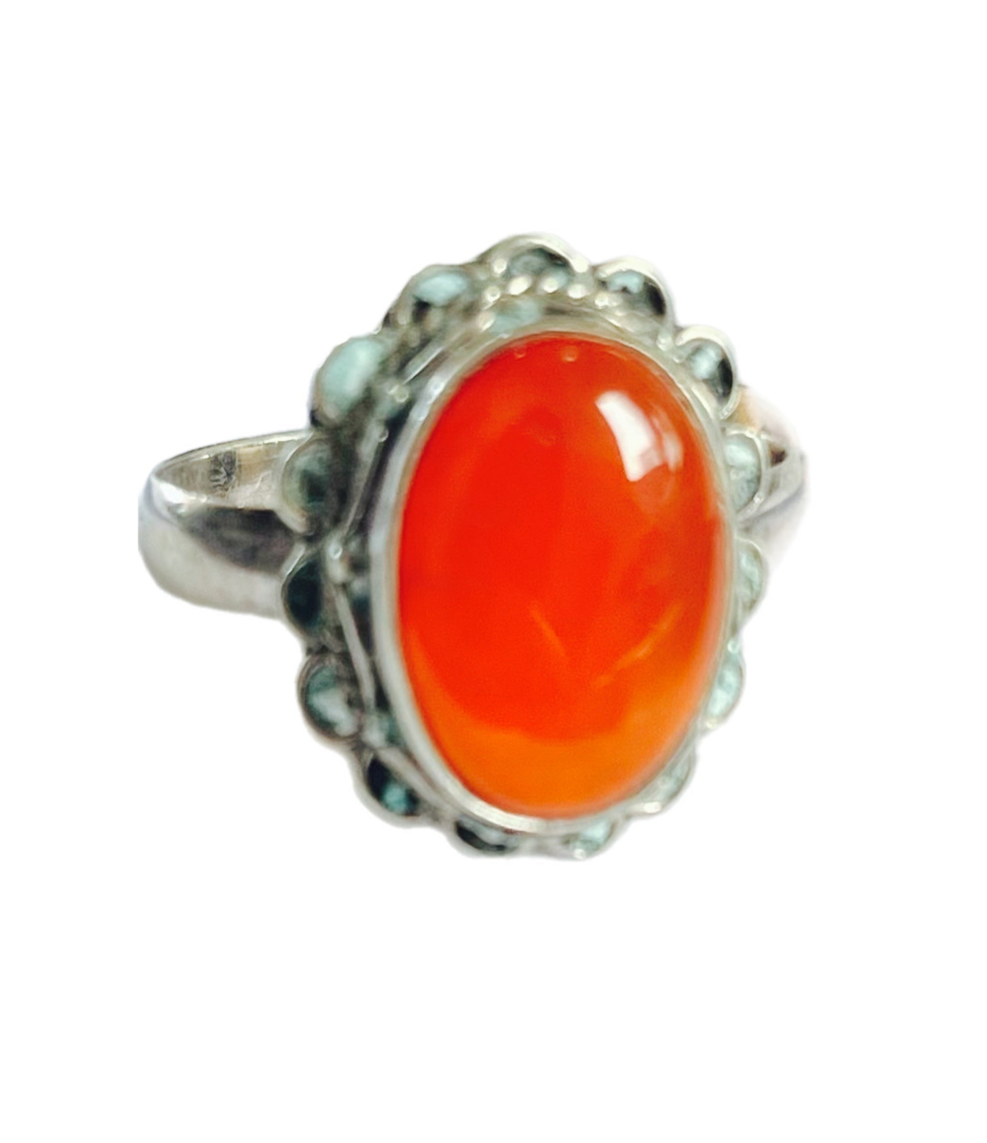 Anel de Prata com Pedra Natural Cornalina T: 8,75