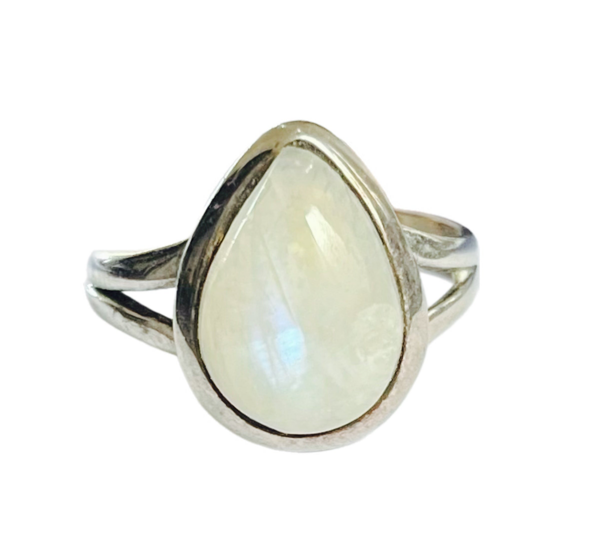 Anel de Prata com Pedra Natural da Lua em Argila, Tamanho: 8.