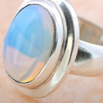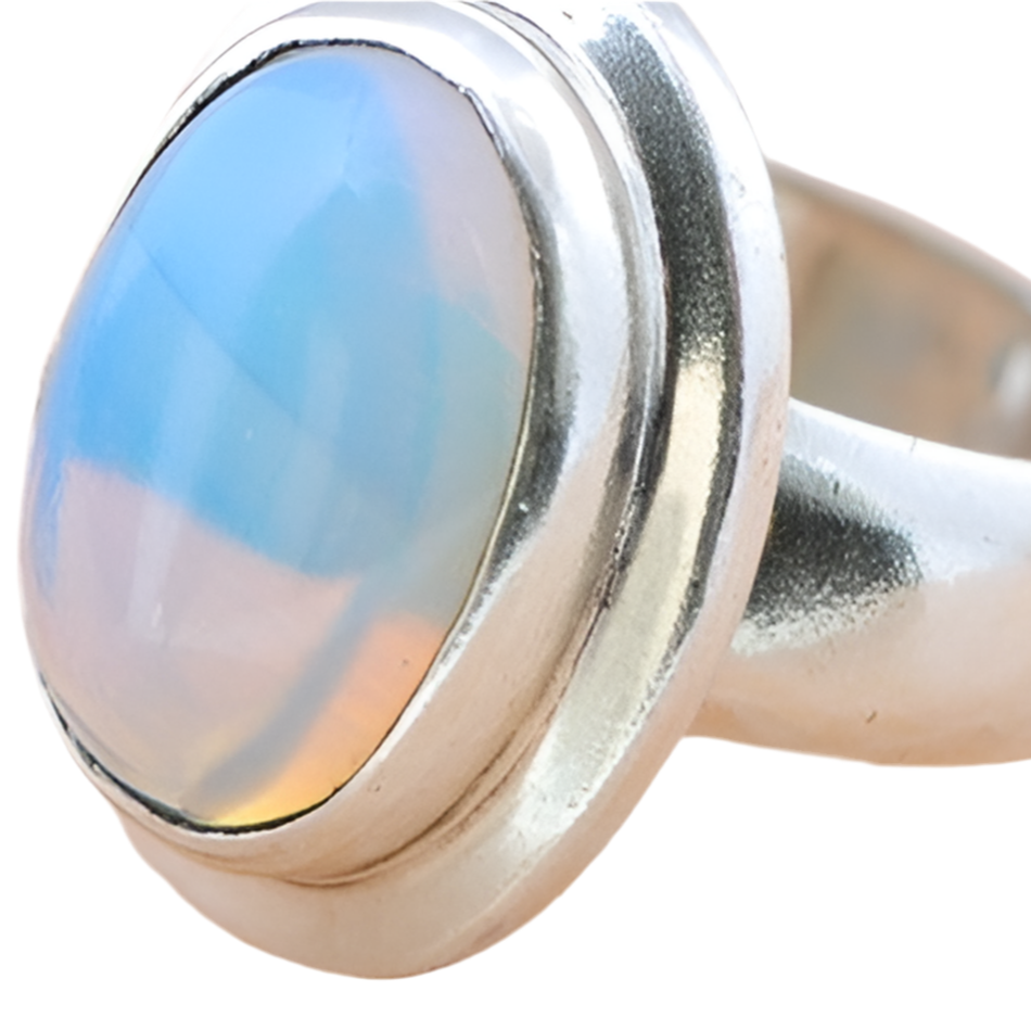 Anel em Prata 925 com Pedra Natural Opalina em Argila, Tamanho:9.