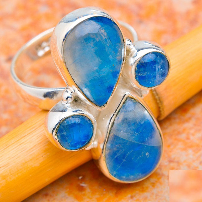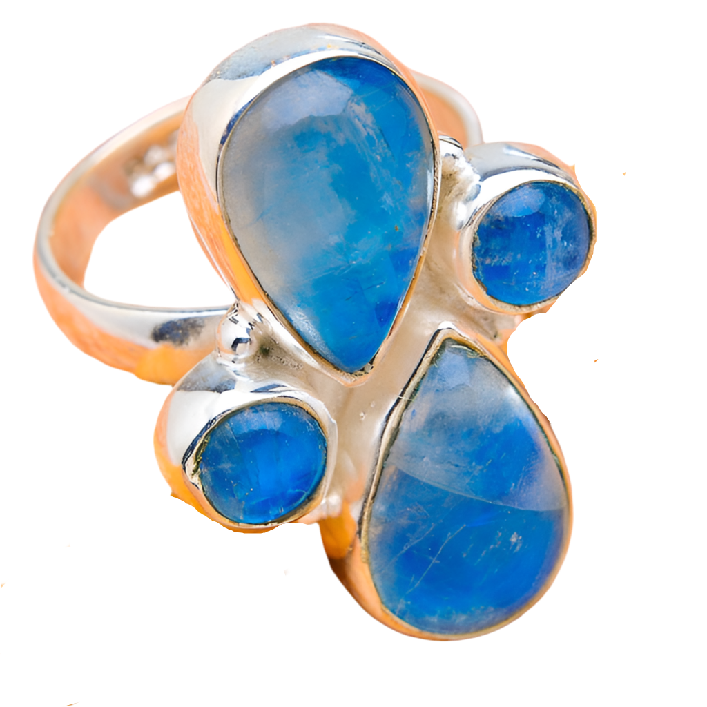 Anel em Prata com Pedra Natural da Lua em Argila, Tamanho: 6.