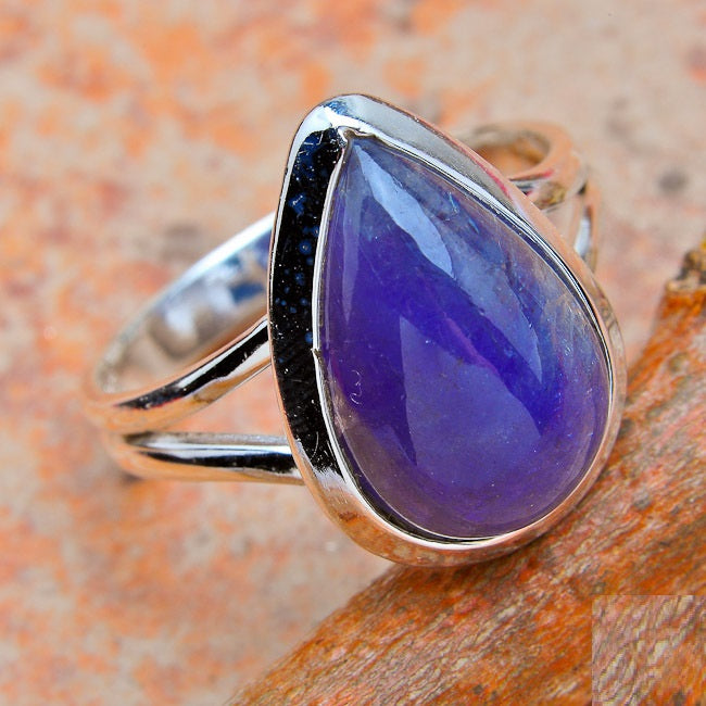 Anel de Prata 925 com Pedra Natural Cianita em Argila, Tamanho: 8.