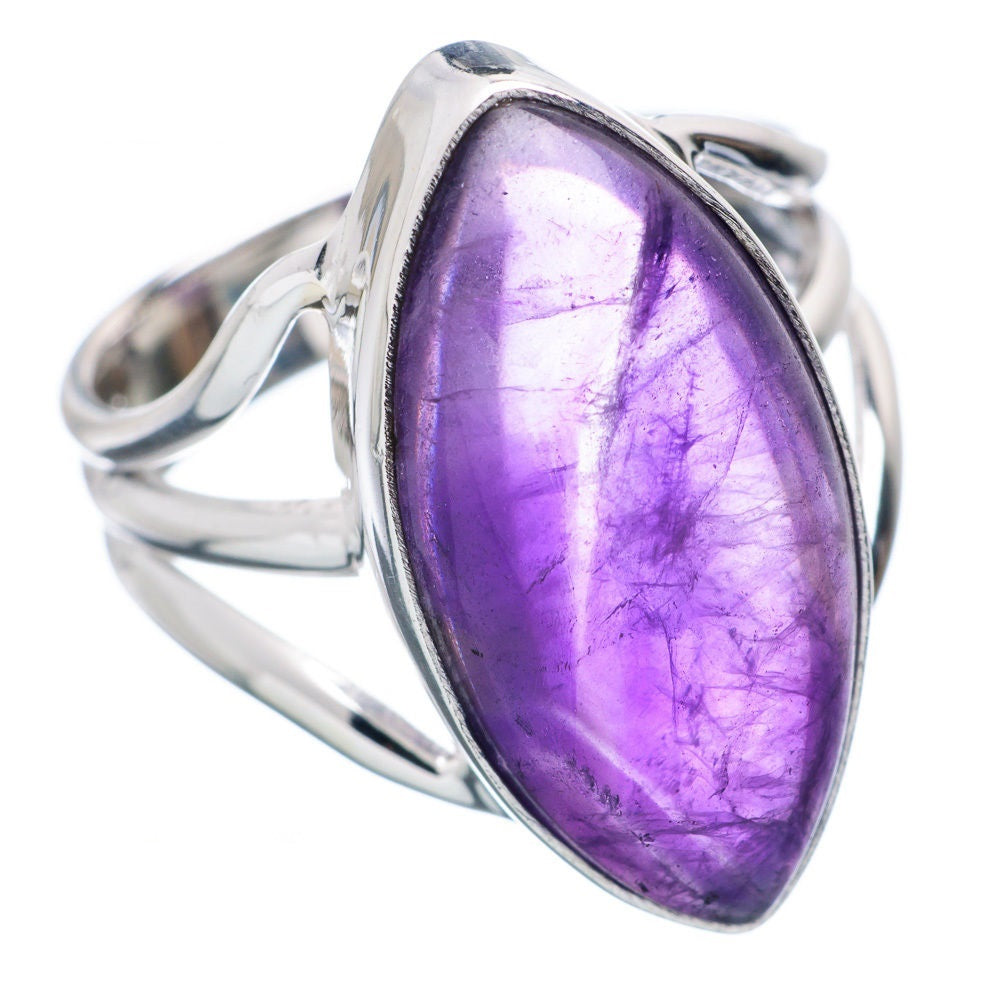Anel em Prata 925 com Pedra Natural Ametista em Argila, Tamanho: 6,25.