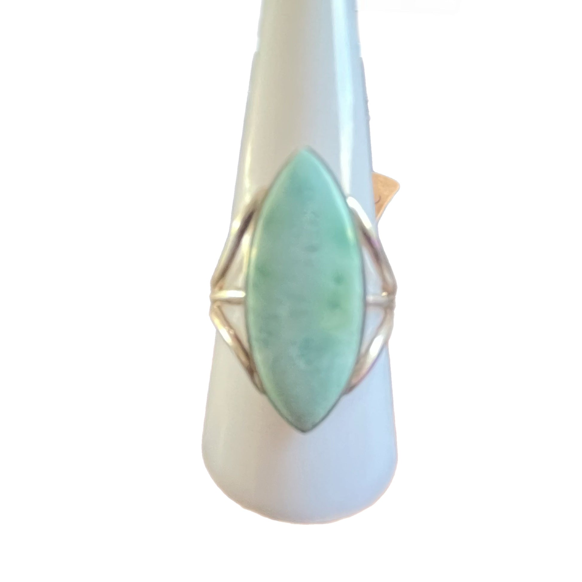 Anel de Prata 925 com Pedra Natural Larimar Índia T : 9.5.