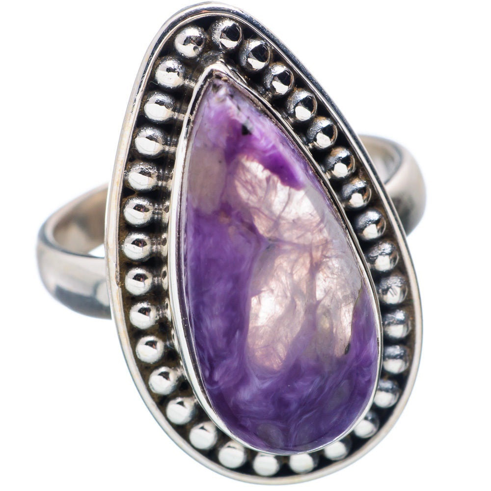 Anel de Prata 925 com Pedra Natural Charoíta em Argila, Tamanho: 6,5.