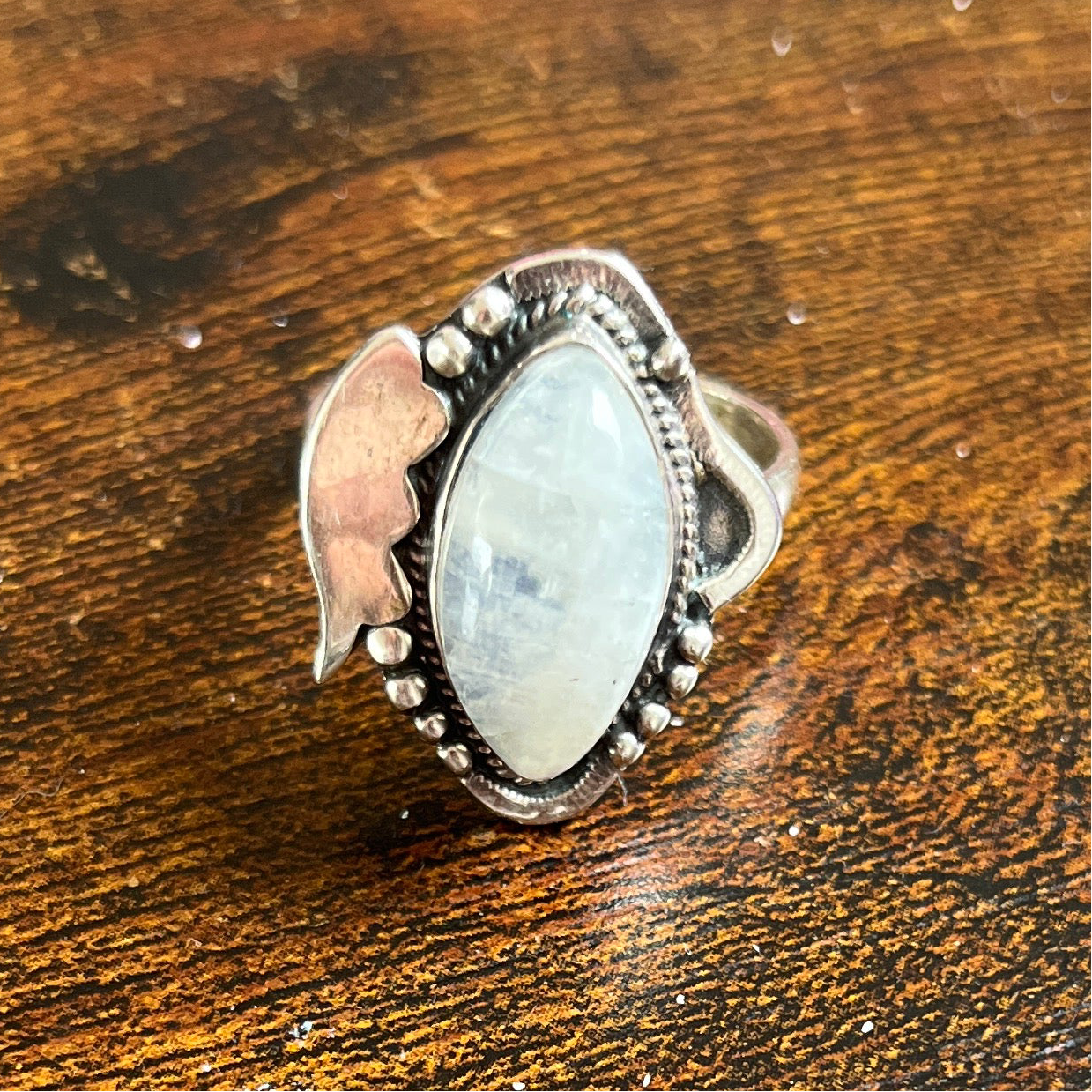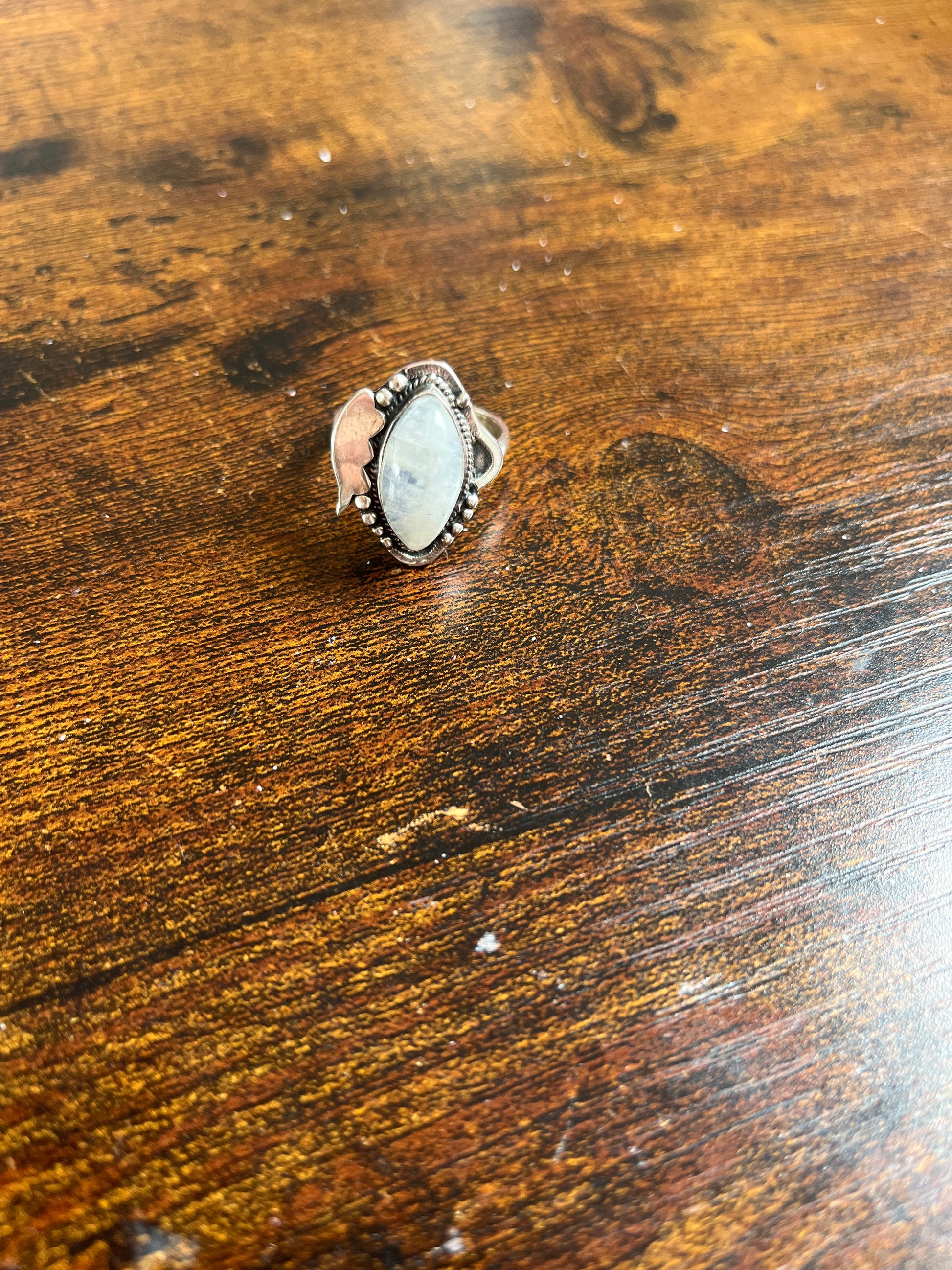 Anel de Prata com Pedra Natural Lua Indiana T:9,75