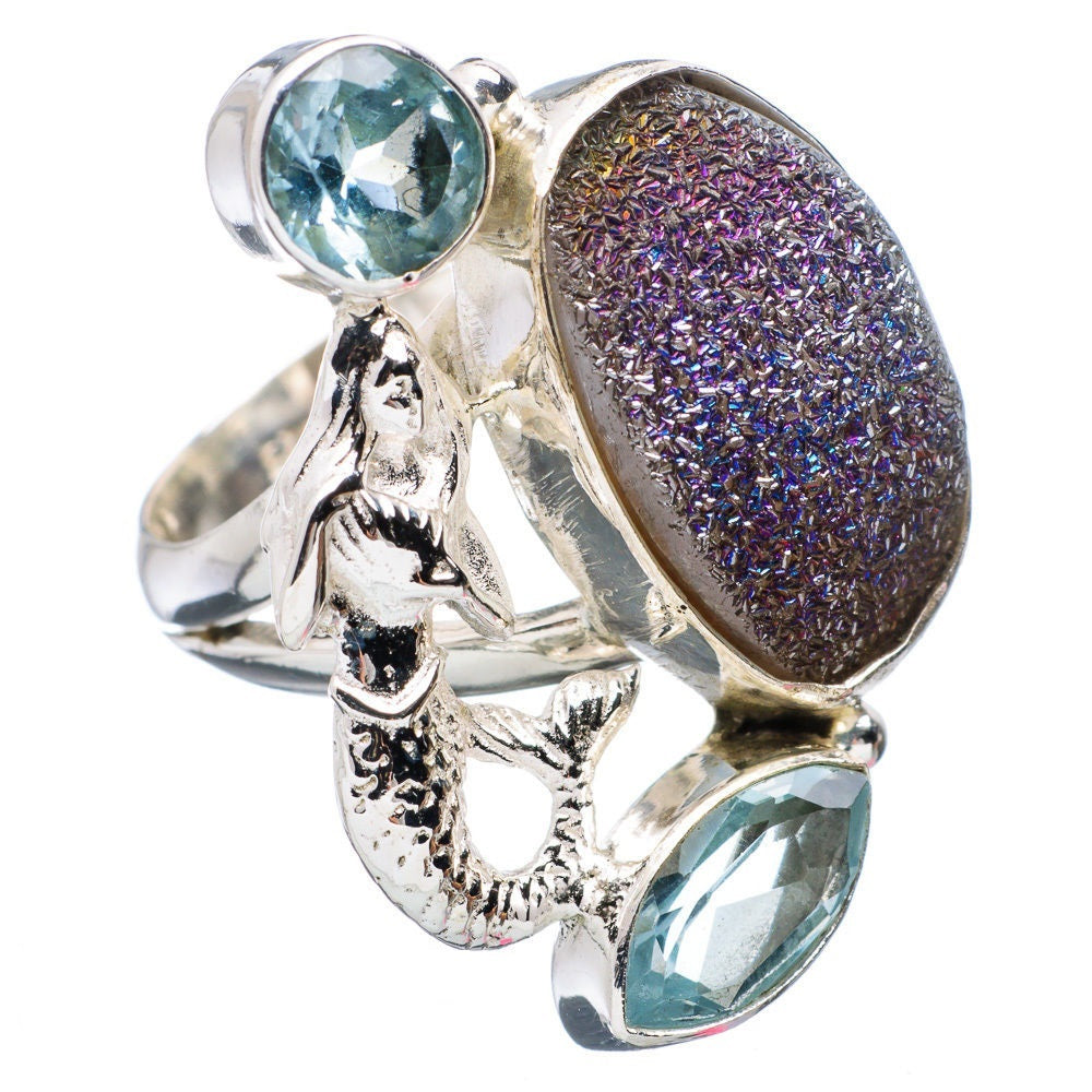 Anel de Prata Pedras Naturais Drusa em Argila, Tamanho: 7,25.