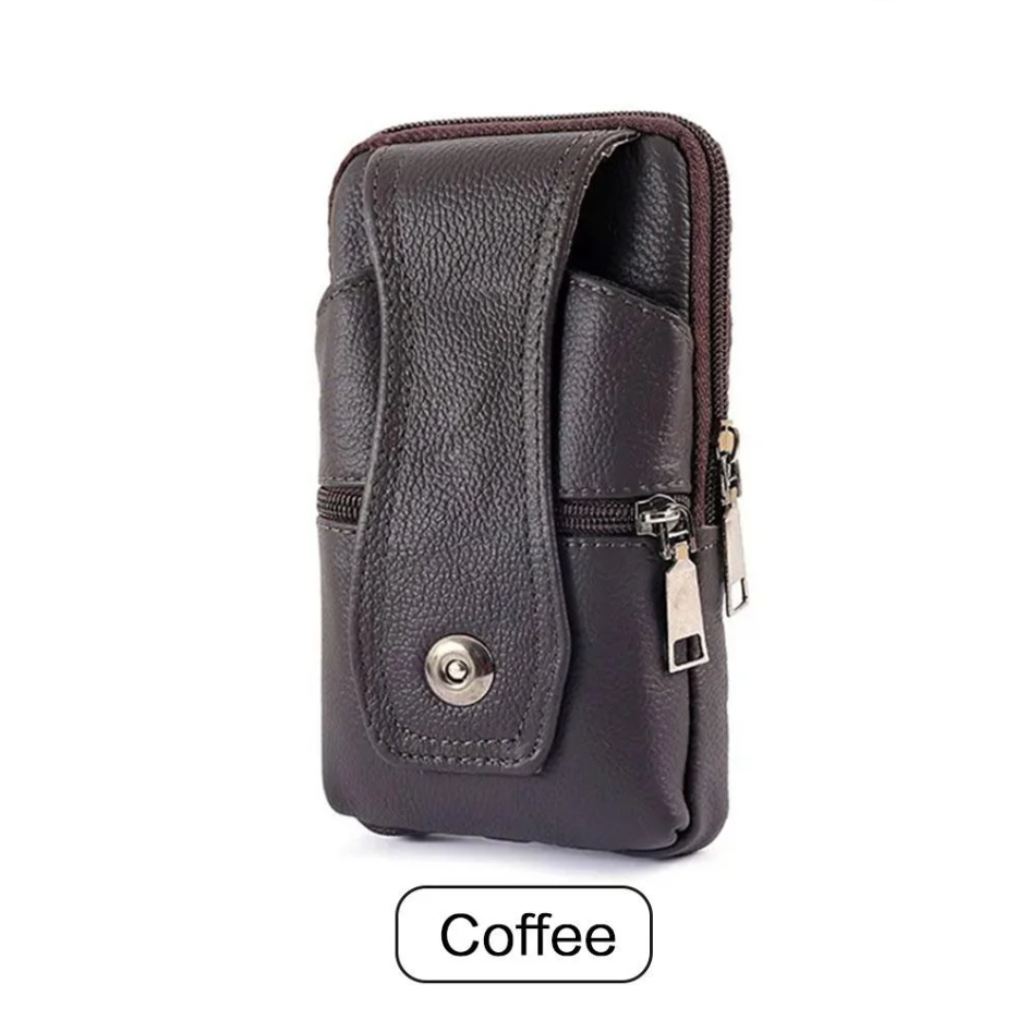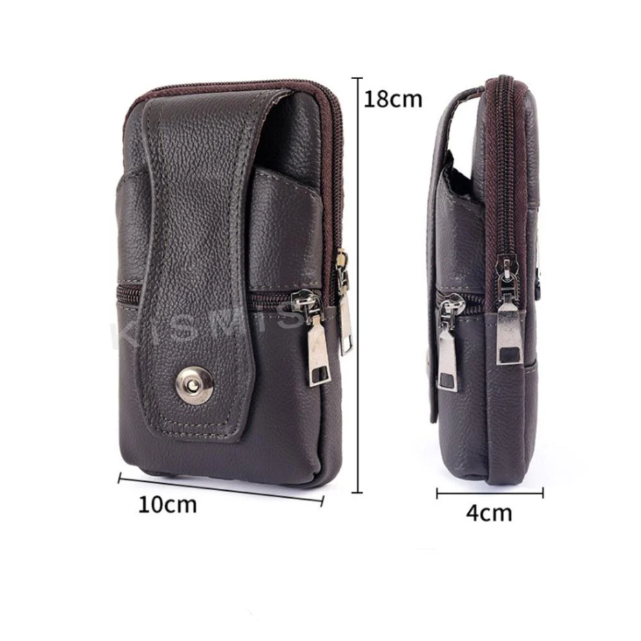 Bolsa de Cintura Pequena de Homem em Couro PU Macio, Castanha.