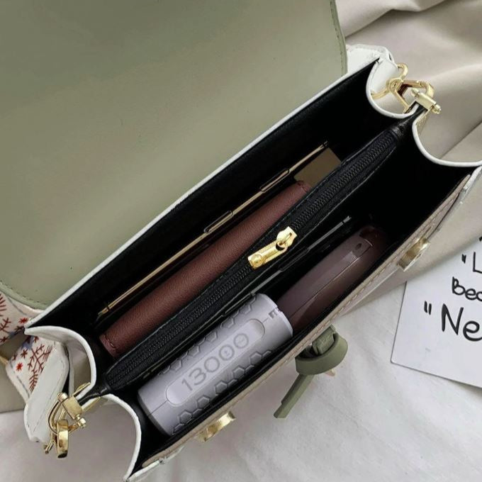Bolsa crossbody versátil, casual, cor contrastante, bolsa quadrada pequena, alça de ombro larga.
