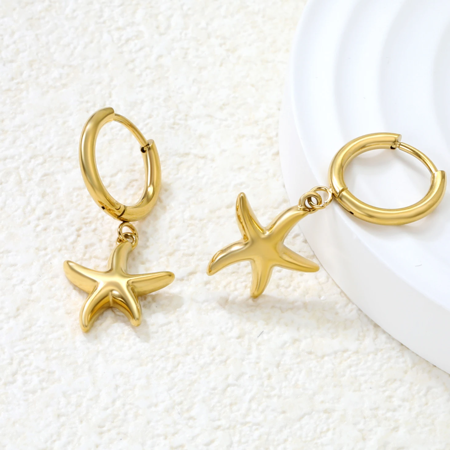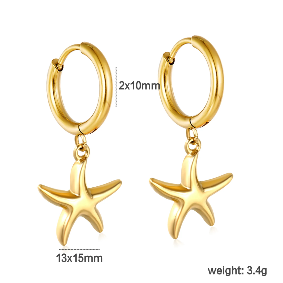 Brinco de Argola em Aço Inoxidável, Estrela Dourada.
