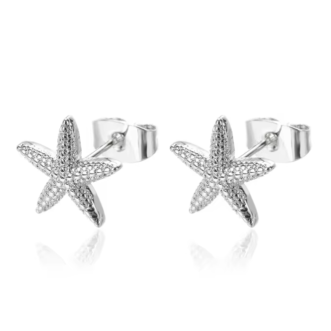 Brinco de Prisioneiro em Aço Inoxidável, Estrela do Mar Prateada