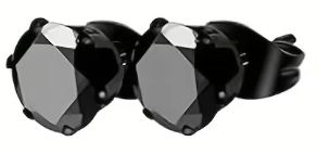 Brincos Pretos em Aço Inoxidável Bola com Pedra Preta.