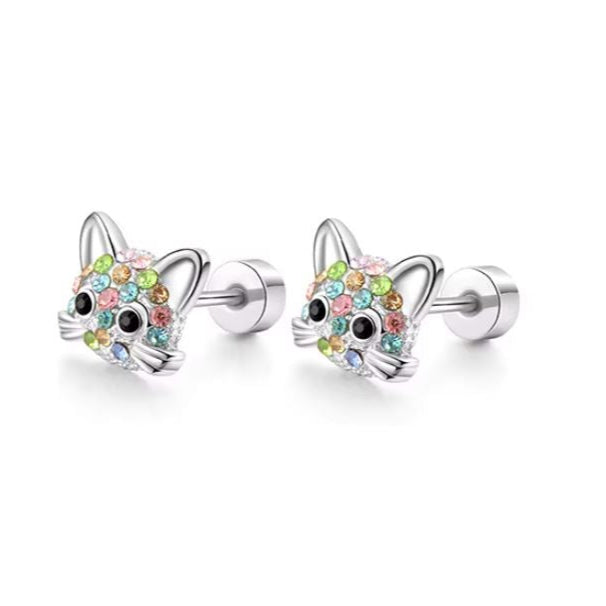 Brincos de Gato em Aço Inoxidável de parafuso Hipoalergênicos para mulheres e meninas.