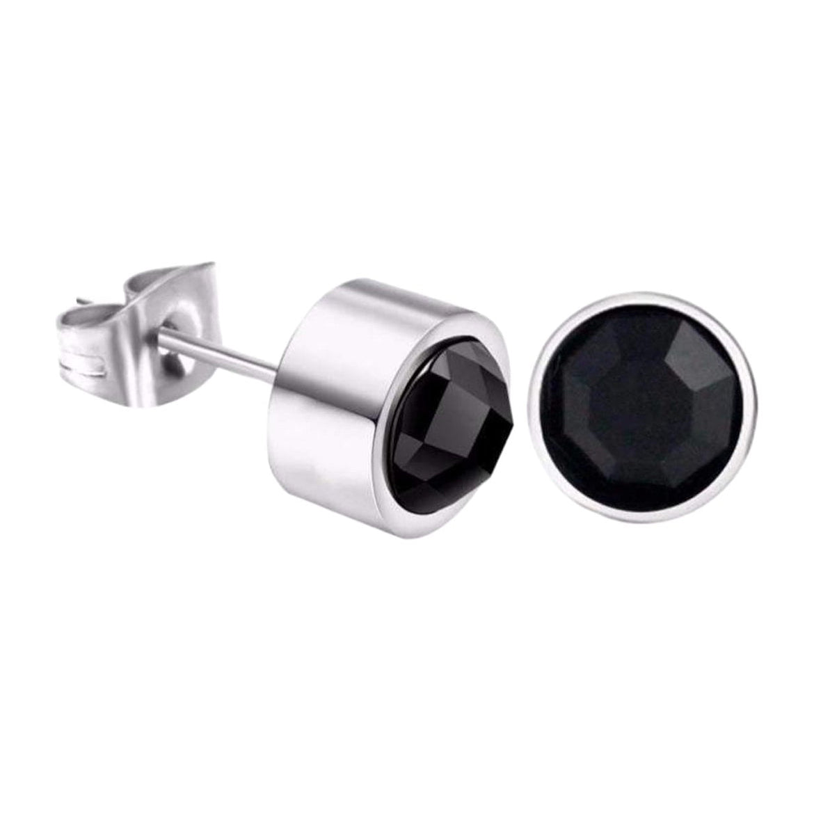 Brincos de Homem em Aço Inoxidável com Cristal Preto Polido