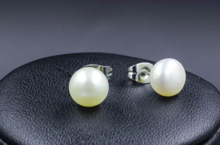 Brincos de Senhora com Pérola de Água Doce em Aço Inoxidável