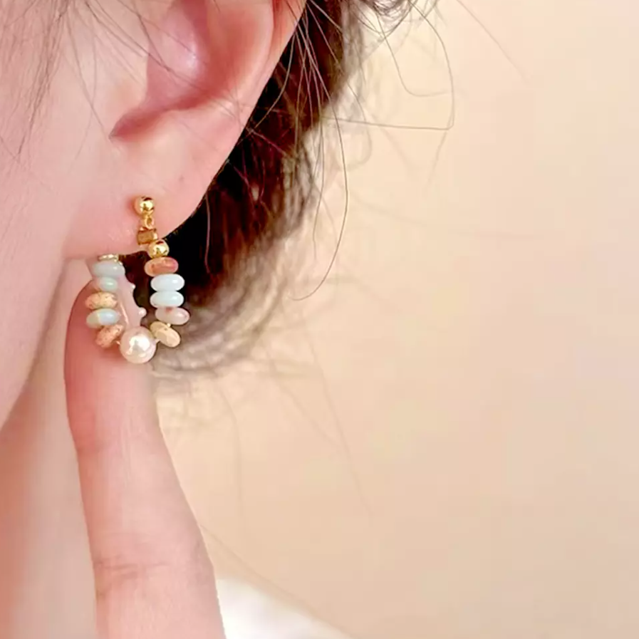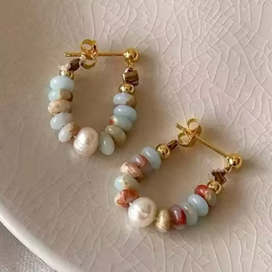 Brincos de Fantasia com Pedras Naturais Simuladas.