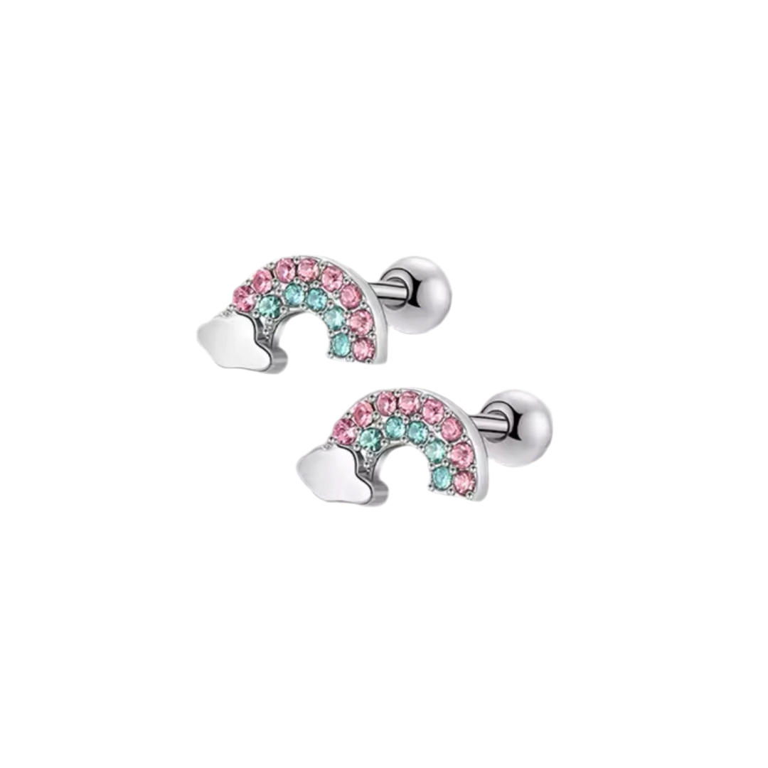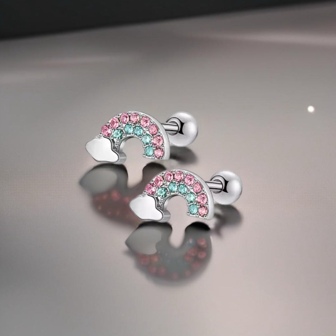 Brincos de Aço Inoxidável 316L,Hipoalergénico - Nuvem com Arco-Íris.