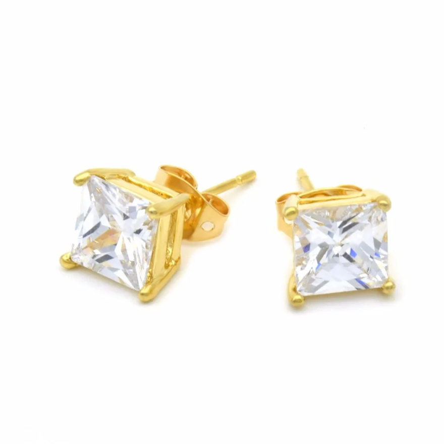 Brincos Folheados a Ouro com Cristal Verdadeiro. (Zircônia).