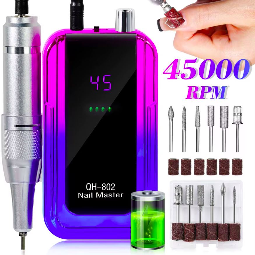 Máquina elétrica recarregável de 45000rpm, com conector usb, removedor de esmalte, conjunto de brocaS, lixadeira de manicure, baixo ruído.