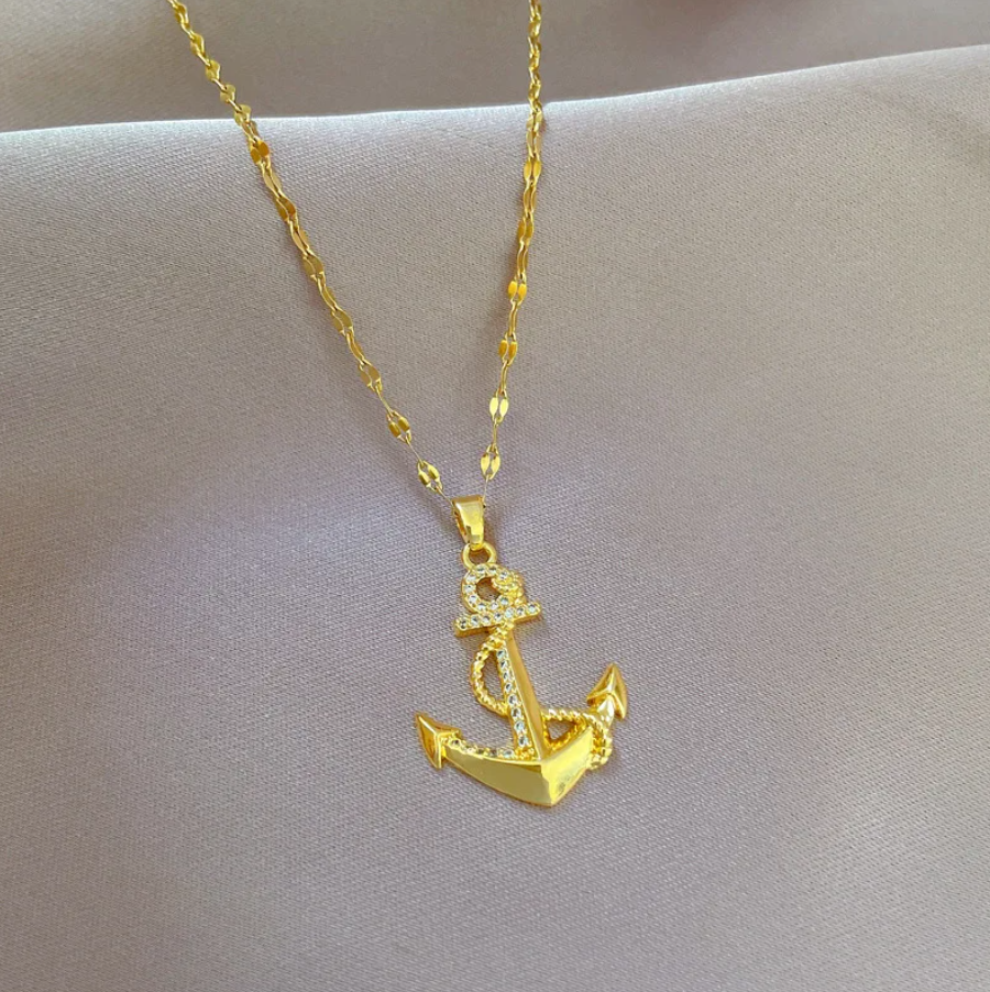 Colar de Senhora em Aço Inoxidável , Âncora Dourada