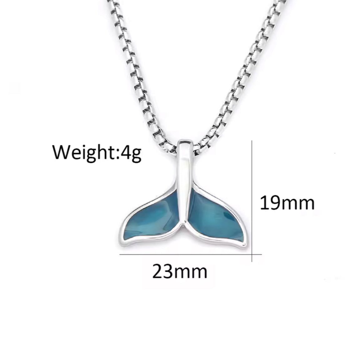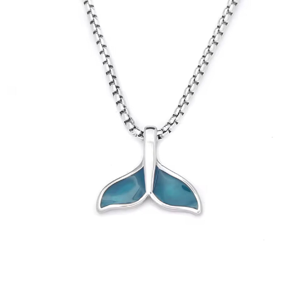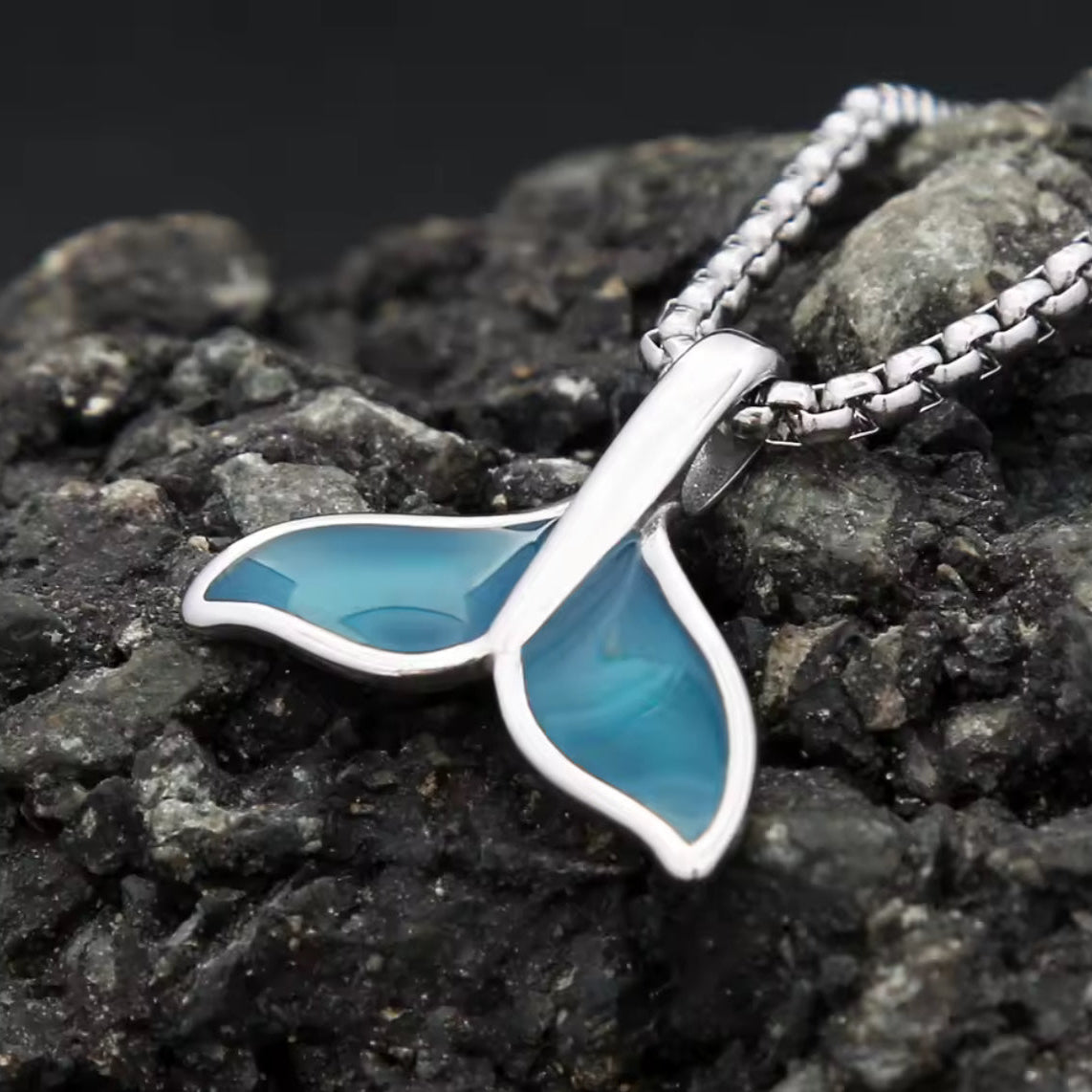 Colar em Aço inoxidável 316l, Rabo de Baleia Azul