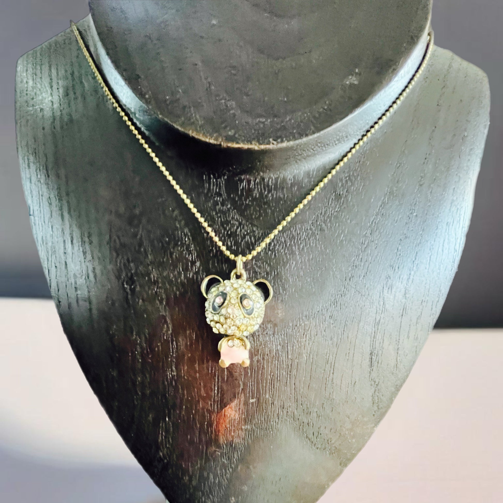 Colar Panda com Cristais e Pedra de Imitação.