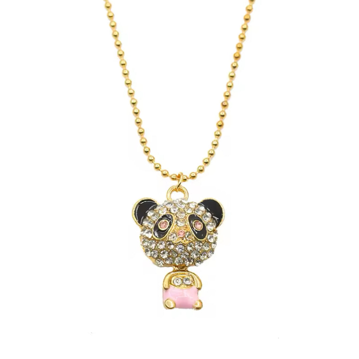 Colar de Criança, Panda com Cristais e Pedra Rosa
