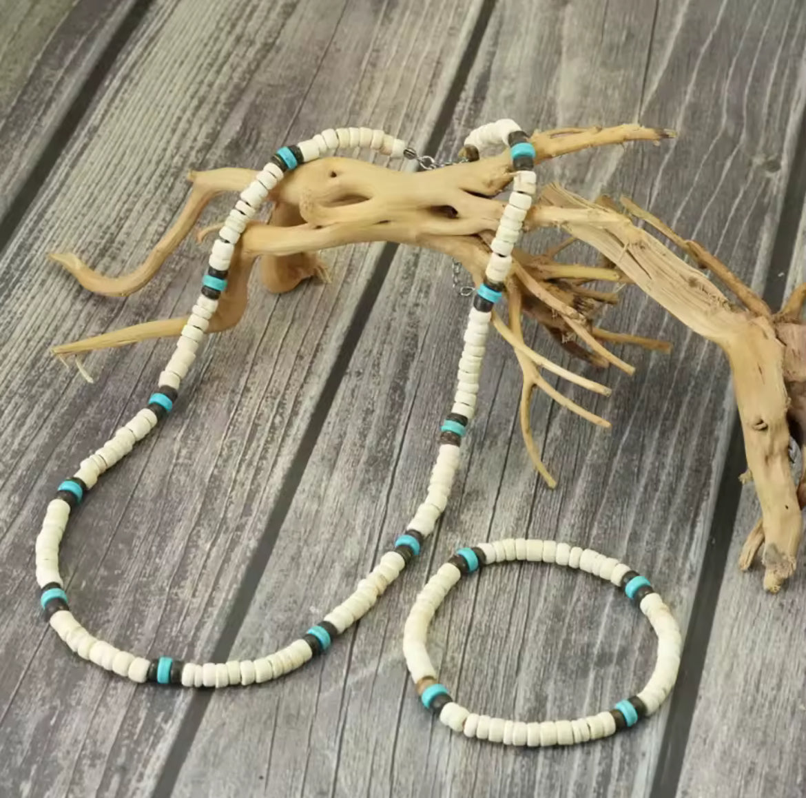 Conjunto masculino feito com Casca de Côco natural , Bege e Azul