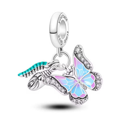 Conta em Prata 925, 3 Fases da Borbolea com a Larva , o Caúlo e a Borboleta.